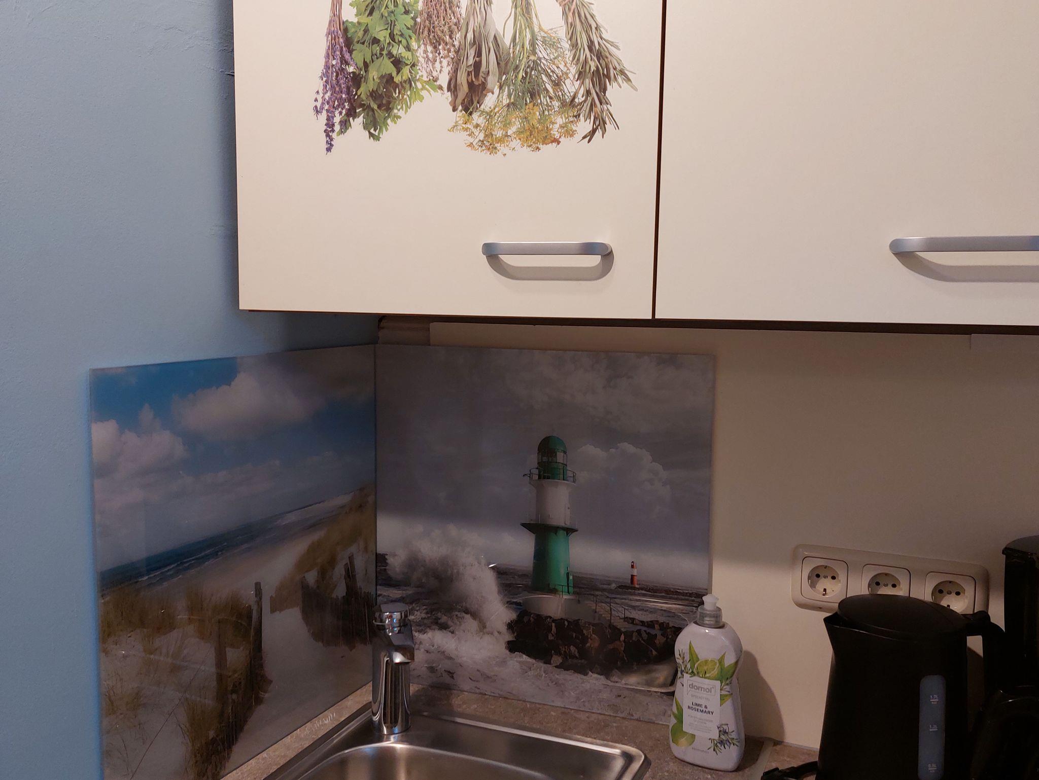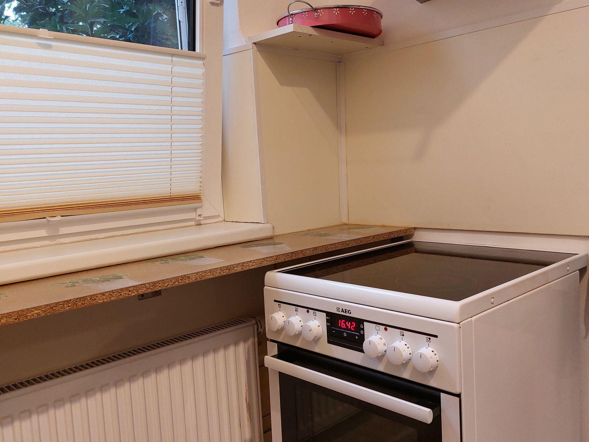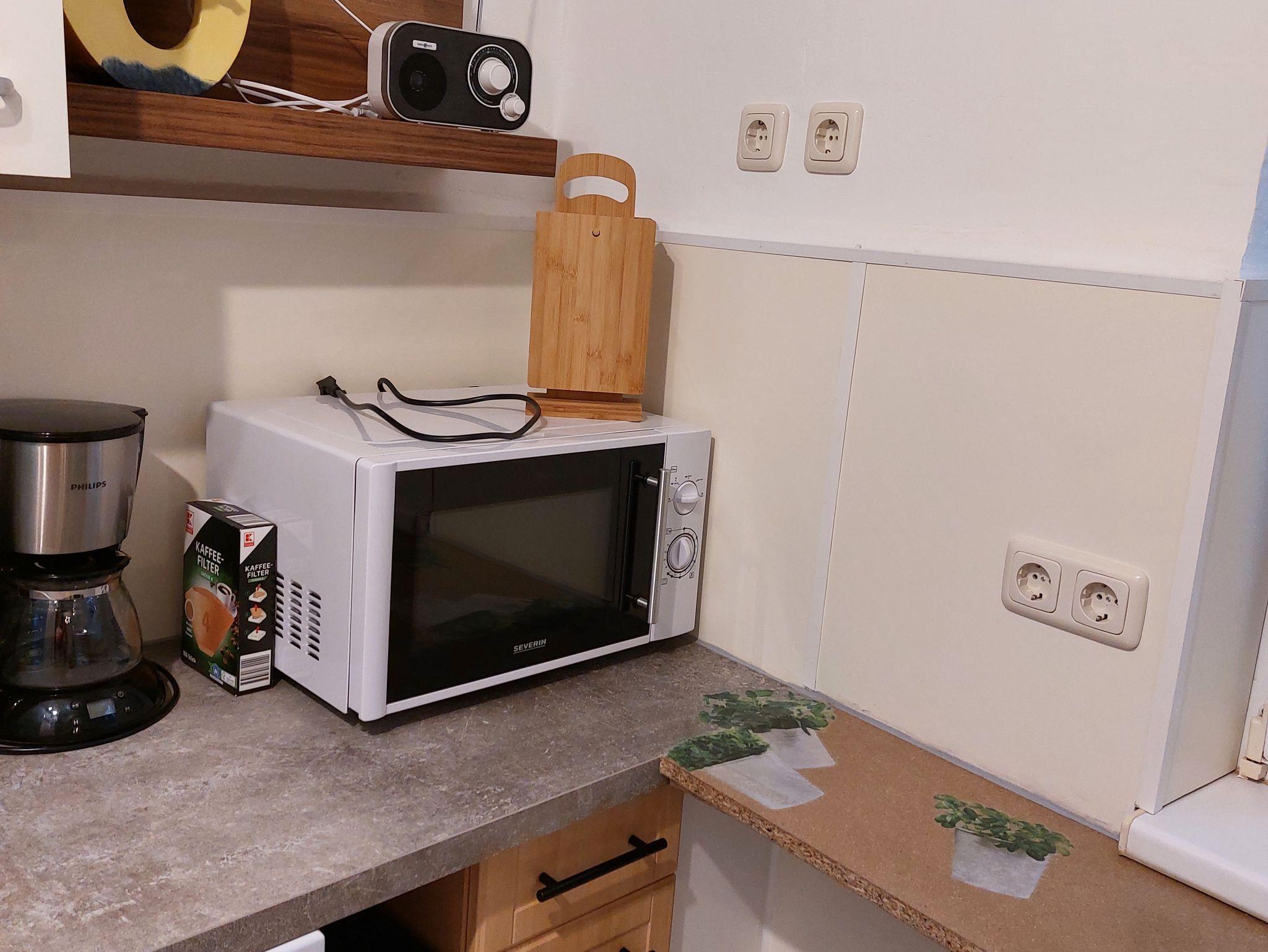 Ferienwohnung mit Wohn/Schlafraum, Küche mit Geschirrspüler und Mikrowelle, Dusche und WC. Es gibt ein zweites WC zur Nutzung.