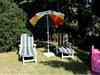 Stueetage: (tekøkken(elkedel, brødrister, komfur(Komfur med to kogeplader), kaffemaskine, mikrobølgeovn, køleskab), Stue/soveværelse(Fjernsyn(parabol), sofahjørne), soveværelse(2x enkeltseng), badeværelse(bruser, håndvask, toilet), tremmeseng, varme) terrasse(overdækket), have, havemøbler, grill, parkering, sandkasse, legeredskaber