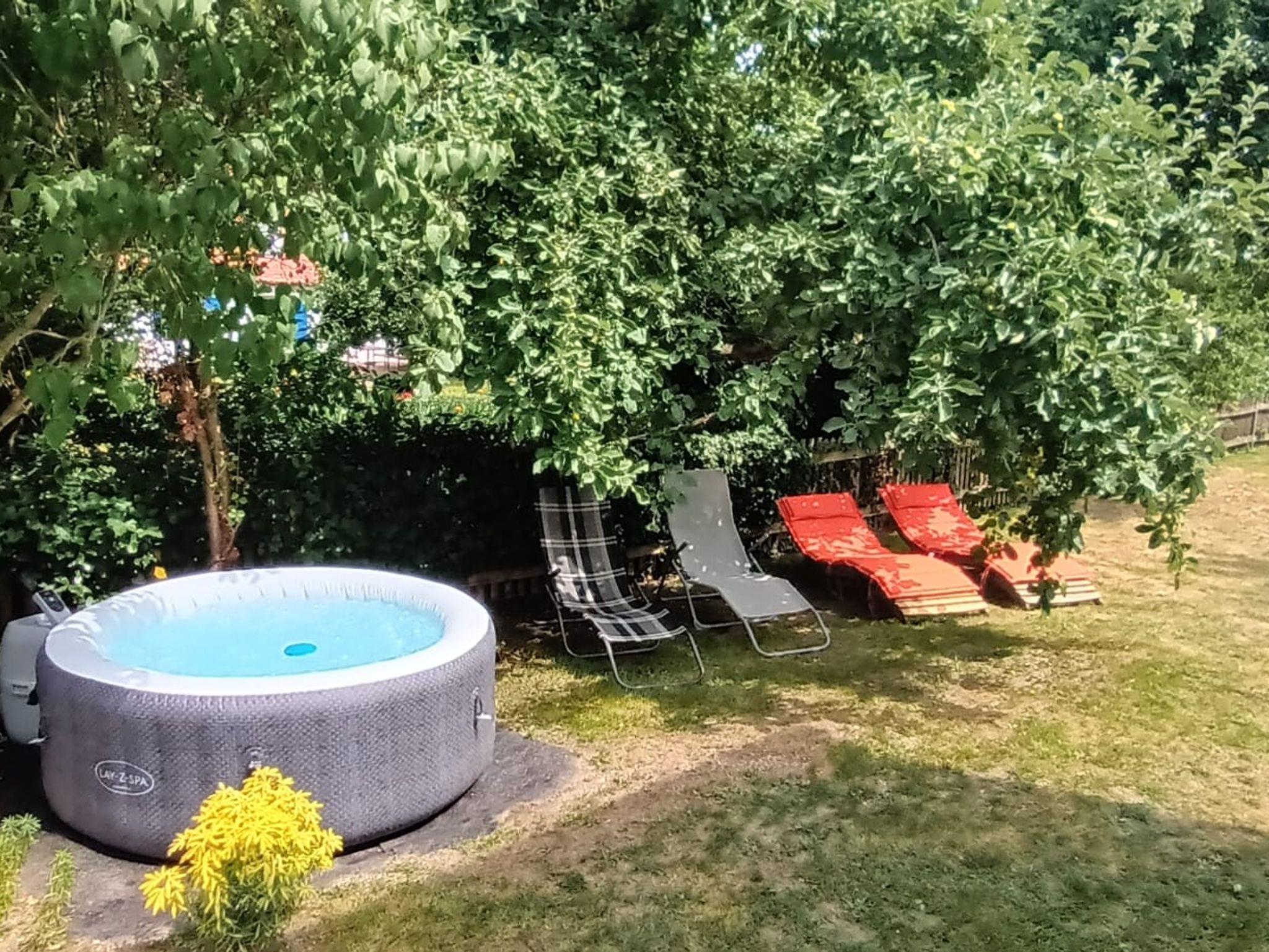 Über 800qm grün laden zum verweilen und entspannen ein. Hier finden Sie auch die Terrasse, mit Pergola, großem Essbereich und Grill, die nur auf sie wartet – perfekt für gemütliche Abende im Freien. Sonnenliegen stehen für ausgiebige Sonnenbäder bereit. Ein kleines Highlight ist der AREBOS Spa Pool Whirlpool, der für Erfrischung und luxuriöse Entspannung sorgt. Auf unserer Spielanlage Tortuga mit Spielturm inkl. Schaukel, Rutsche, Sandkasten und einem Trampolin können Kinder verschiedenen Alters sich richtig austoben, spielen und turnen. Zusätzlich bietet die große Spielwiese den kleinen Feriengästen viel Platz für Bewegung, denn wir bieten auch unseren kleinsten Gästen schon die Möglichkeit den Alltag hinter sich zu lassen. Unser Ferienhaus ist mit allem ausgestattet, was Sie für einen perfekten Aufenthalt benötigen.