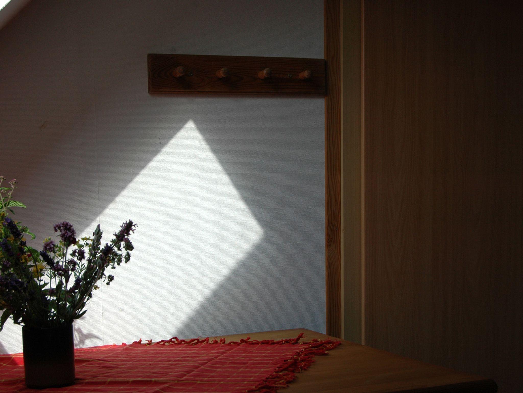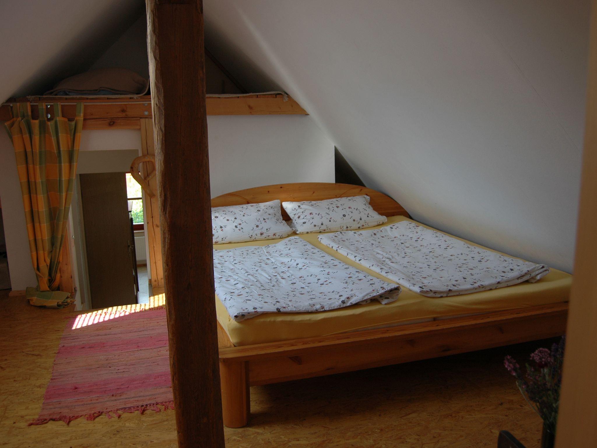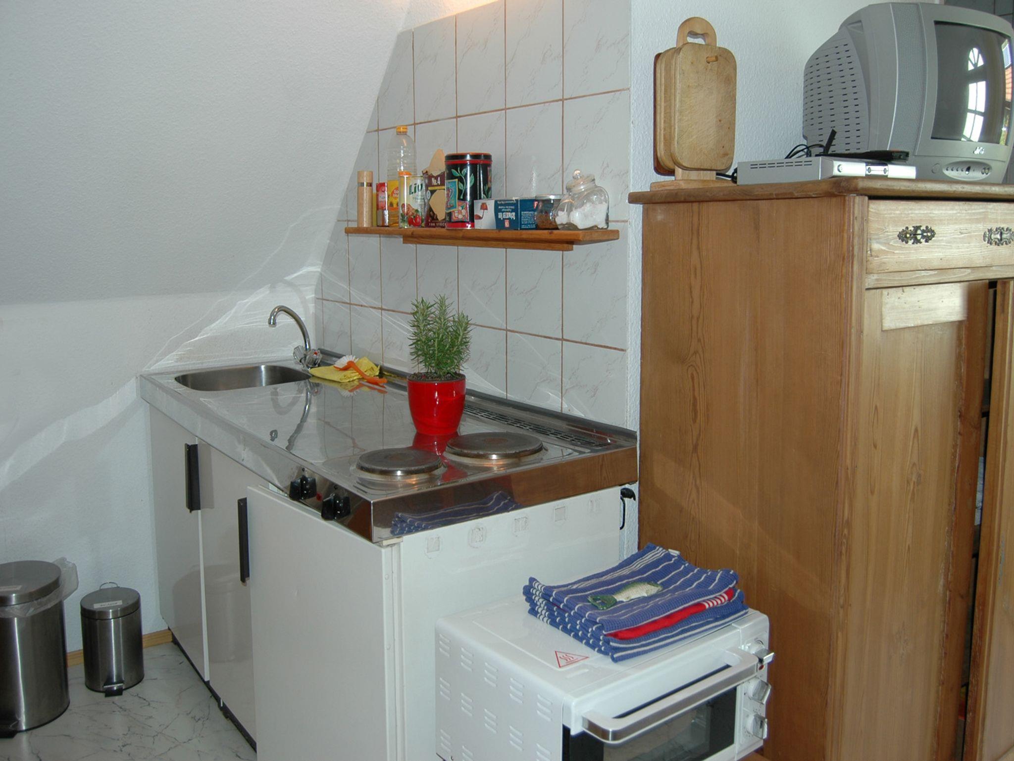 Kleine Dachferienwohnung mit etwa 45 m² mit Du/WC und Küchenzeile. 2 Schlafzimmer, wobei das hintere Zimmer durch das vordere betreten wird (siehe Grundriss!). Schlafzimmer über eine kleine, steile Treppe erreichbar.