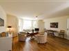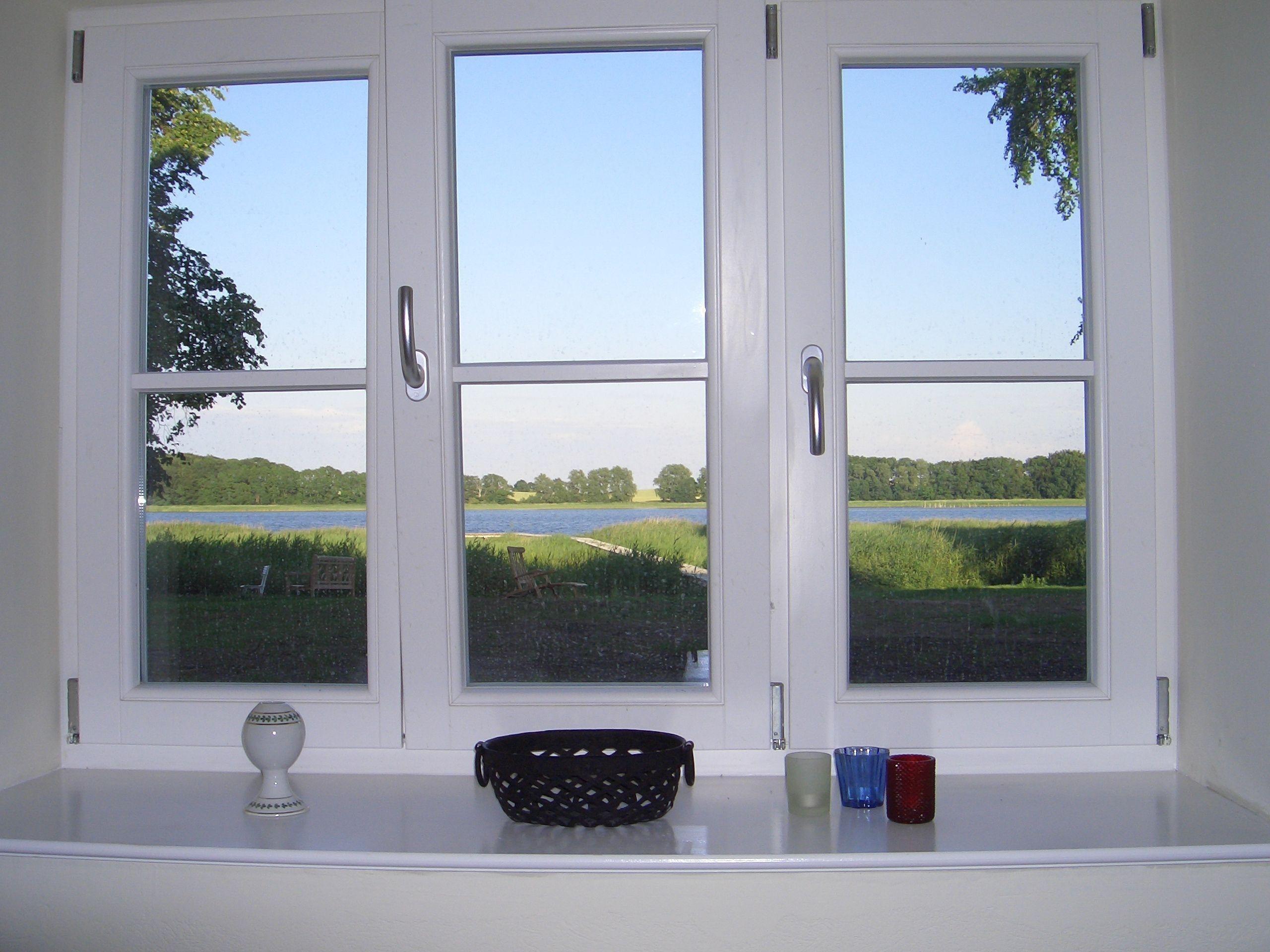 Die Böden der Ferienwohnung bestehen aus Eichen-Parkett. Vom Wohnzimmer hat man einen sehr schönen Blick auf das Wasser und den Badesteg.