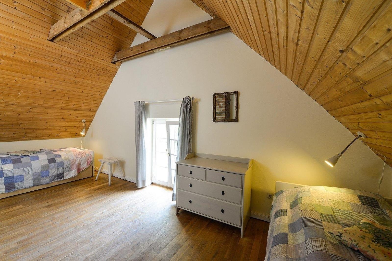 Das frei stehende Ferienhaus Remise befindet sich neben dem Haupthaus des schönen Gutshauses und erstreckt sich über zwei Etagen, wobei das Obergeschoss über eine Holztreppe zu erreichen ist. Die Remise für bis zu sechs Personen und in einer Größe von 72 m² ist gemütlich eingerichtet und besteht aus vier Zimmern: Im Erdgeschoss ein großes Wohnzimmer mit offener Küche (Siemens-Geräte) und schönem Blick auf den Garten und das Wasser, ein Schlafzimmer mit zwei Einzelbetten und zwei Schlafzimmer mit einem Doppelbett, die drei Schlafzimmer alle im Obergeschoss. Die Remise hat ein Badezimmer mit Badewanne und Dusche sowie ein separates WC.