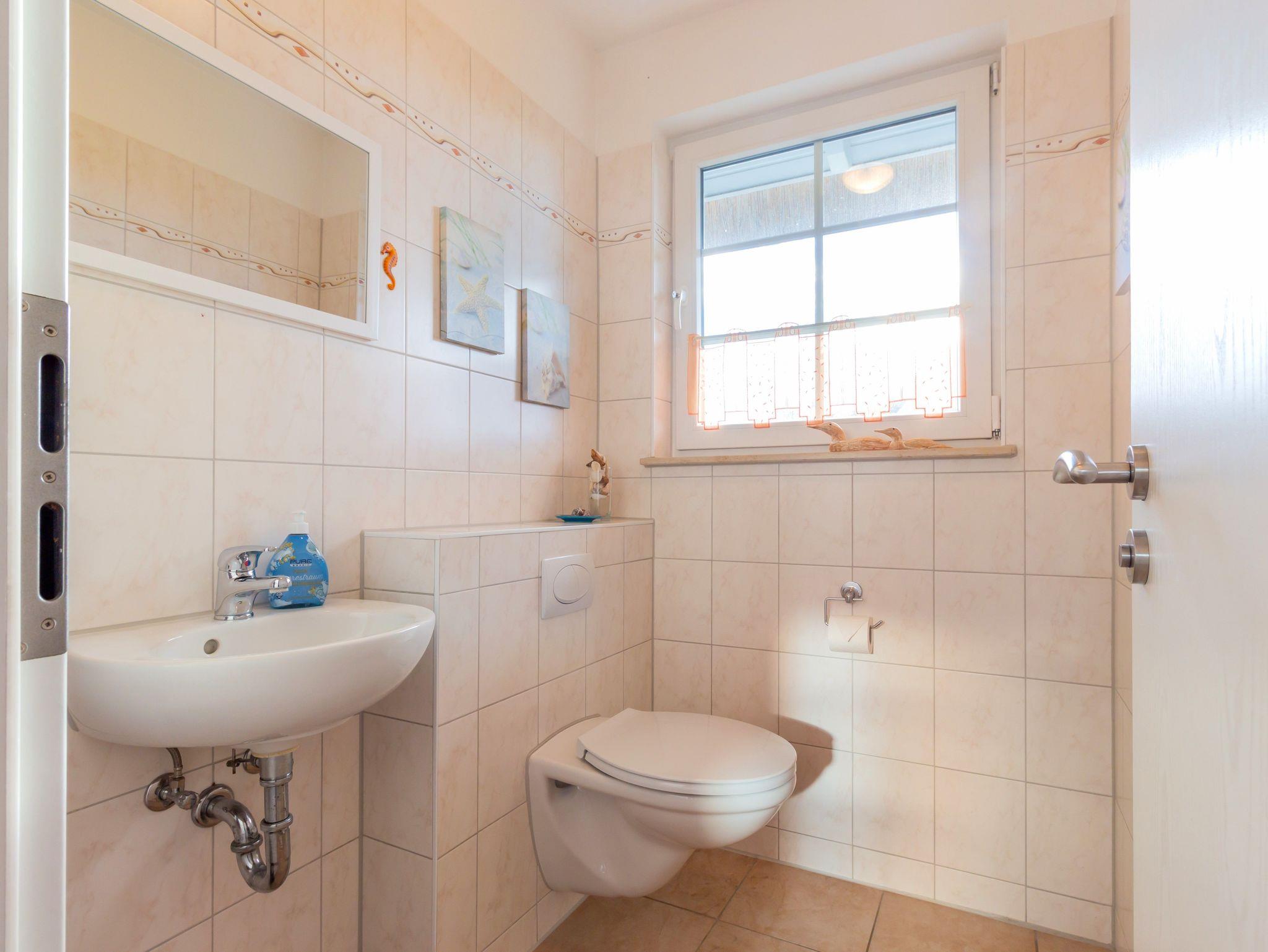 Die Räume sind modern und hell ausgestattet. Das zentrale Bad bietet Dusche und WC und eine Waschmaschine mit integriertem Trockner. Zusätzlich ist im Erdgeschoss ein Gäste-WC vorhanden. Im Winter ist das Haus mit der Zentralheizung (Fußbodenheizung) komfortabel beheizbar. Die reichhaltig ausgestattete Küche bietet eine Spülmaschine, Kaffeemaschine, Toaster, Mikrowelle, Wasserkocher und alle Utensilien die gemütliches, gemeinsames Kochen erfordert. Fernsehgerät und Audiosystem stehen zur Unterhaltung zur Verfügung.