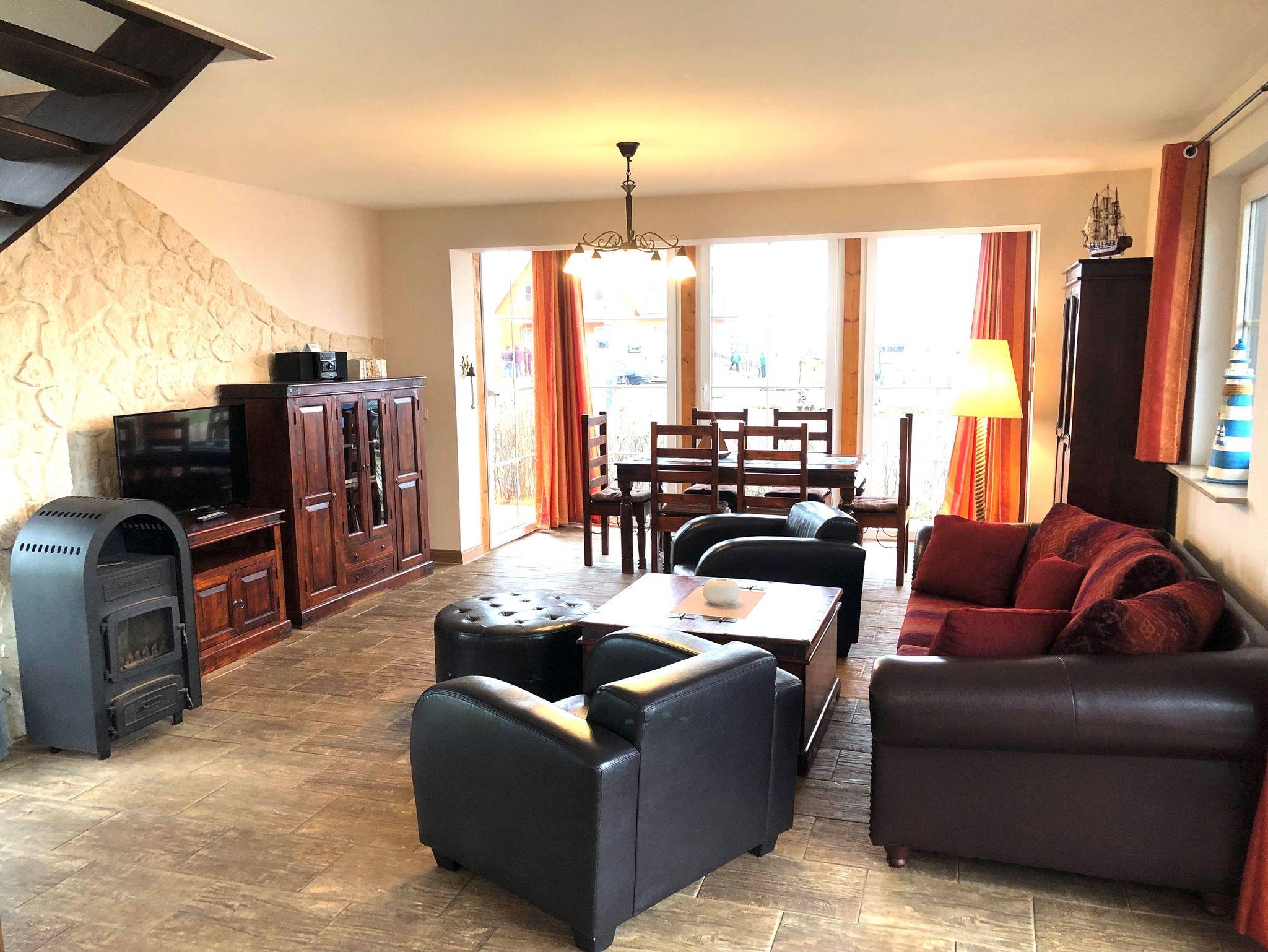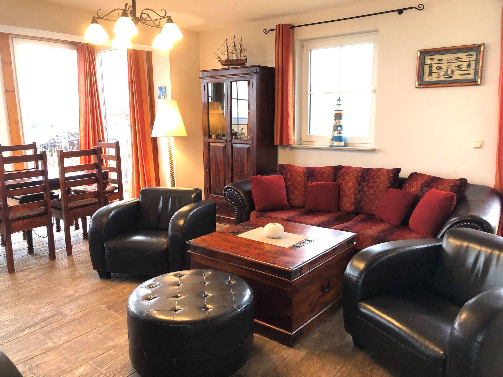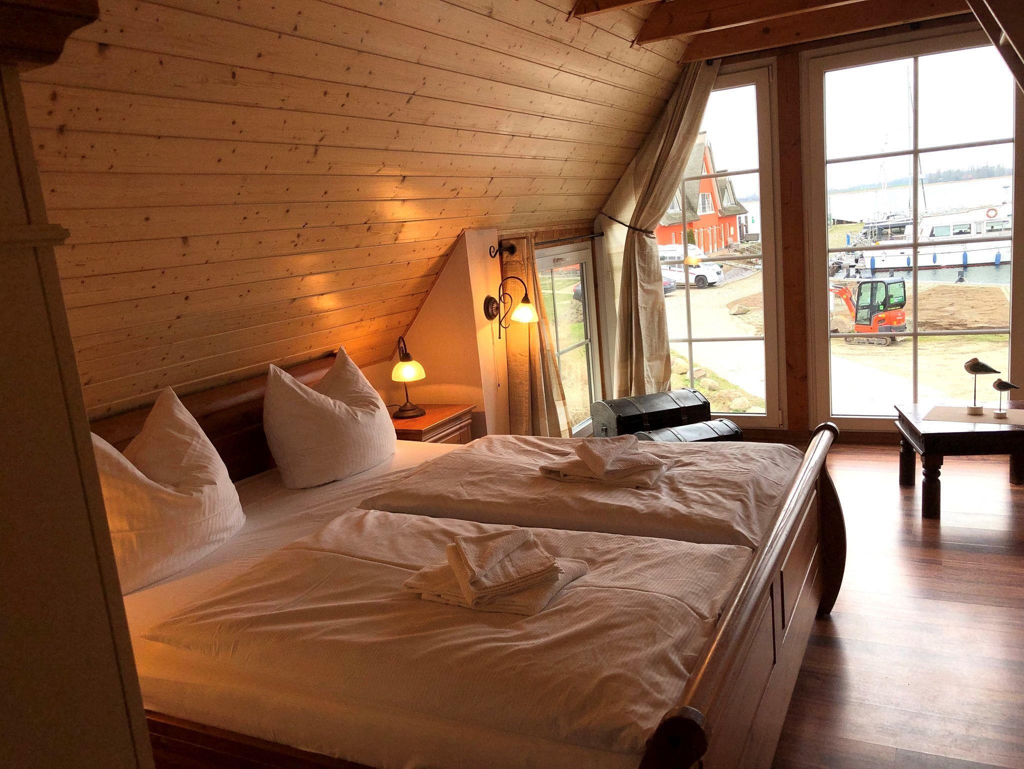 Unser Ferienhaus Seeschwalbe liegt in 1. Reihe am neuen Yachthafen Vieregge. Das Ferienhaus ist traditionell gebaut und ist sehr gemütlich eingerichtet. Besonders der Blick auf die Boddenlandschaft und den Hafen wird Sie begeistern. Im Erdgeschoss haben Sie einen großen Wohnbereich mit Sitzecke, Kaminofen und Essecke im Wintergarten, eine offene Landhausküche mit Kochinsel, kleinen Flur und eine Gästetoilette. Im oberen Geschoß befinden sich die 2 Schlafzimmer und ein Bad mit kleinem Whirlpool und kleiner Sauna, Dusche, WC und Waschplatz. Im seeseitigen großen Schlafzimmer befindet sich neben dem Doppelbett noch ein Hochbett welches die Kinder besonders lieben werden. Im zweiten Schlafzimmer befinden sich zwei Einzelbetten. Wir vermieten unser Ferienobjekt inklusive aller Verbrauchskosten, Reinigung sowie inklusive Bettwäsche und Handtücher, sodass Ihnen außer der rückzahlbaren Kaution keine zusätzlichen Kosten entstehen. Wir freuen uns auf Ihren Besuch!