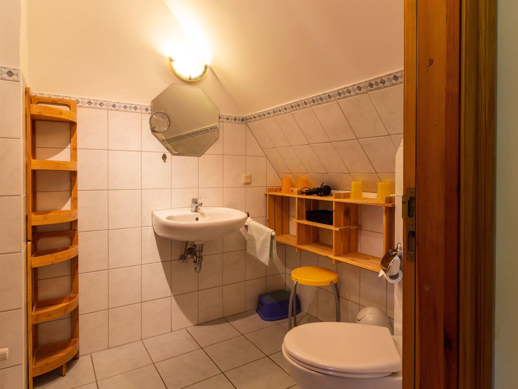 Hochwertig ausgestattetes Ferienhaus. Im Erdgeschoss separate Küche mit Esstisch, Wohnzimmer mit Kachelofen und Bad mit Badewanne. Im Obergeschoss ein Schlafzimmer mit Doppelbett, ein zweites Schlafzimmer mit einem Doppelstockbett, unten als Doppelbett (1,40 m breit) und einem Oberbett. Dusche/WC.