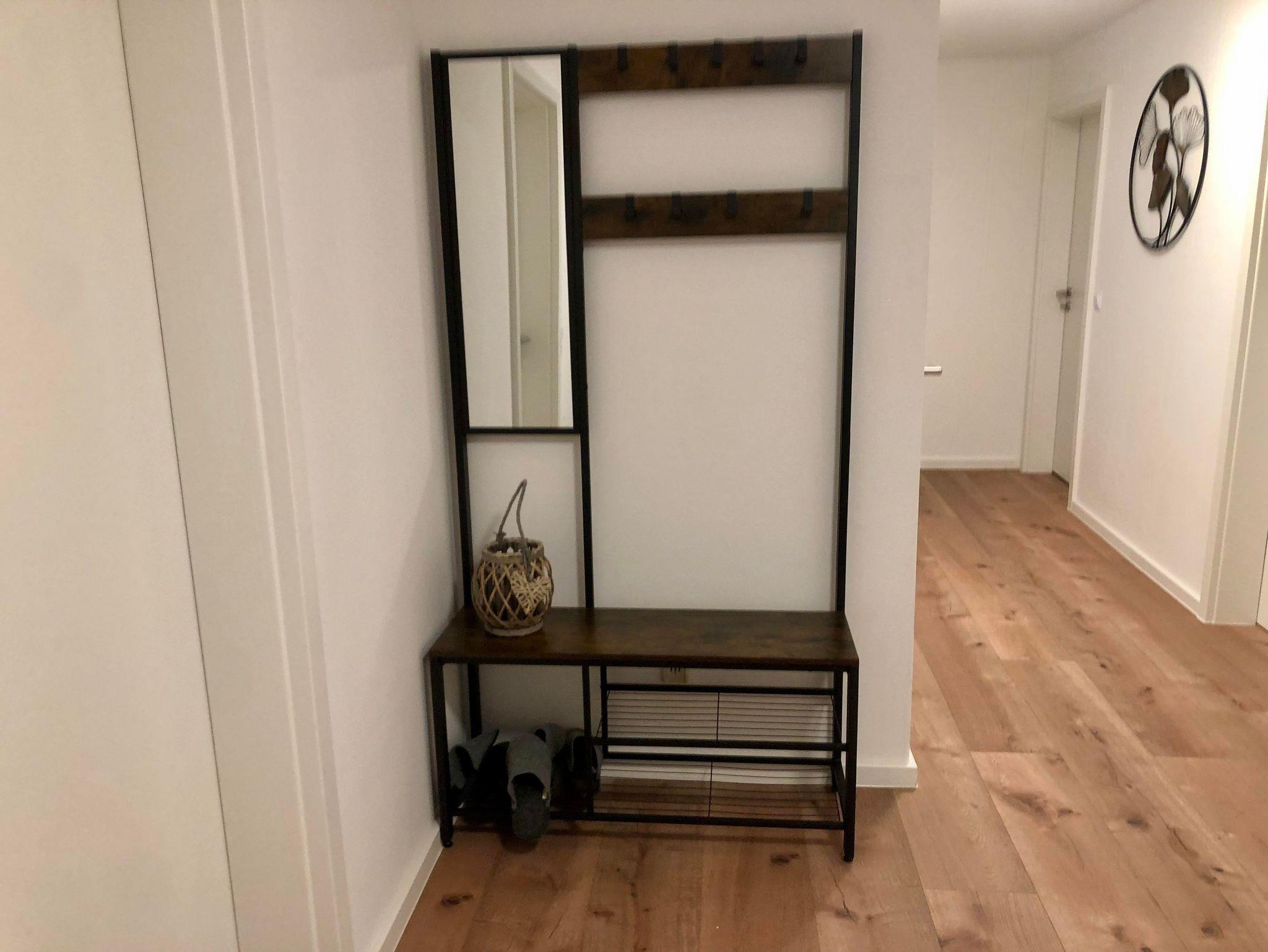 In der geräumigen Diele ist eine Garderobe und ein Schreibtisch untergebracht.