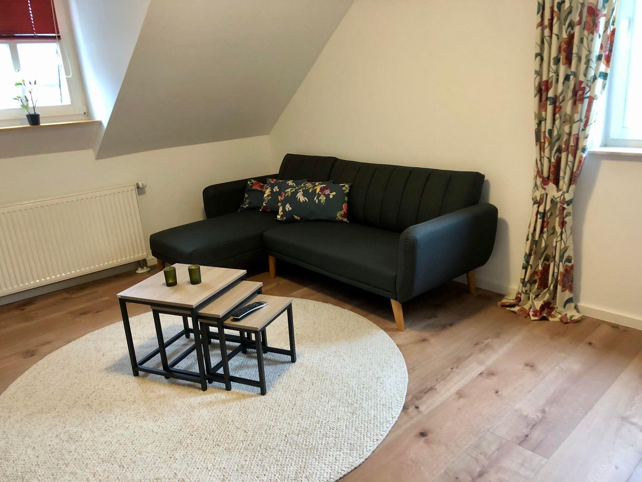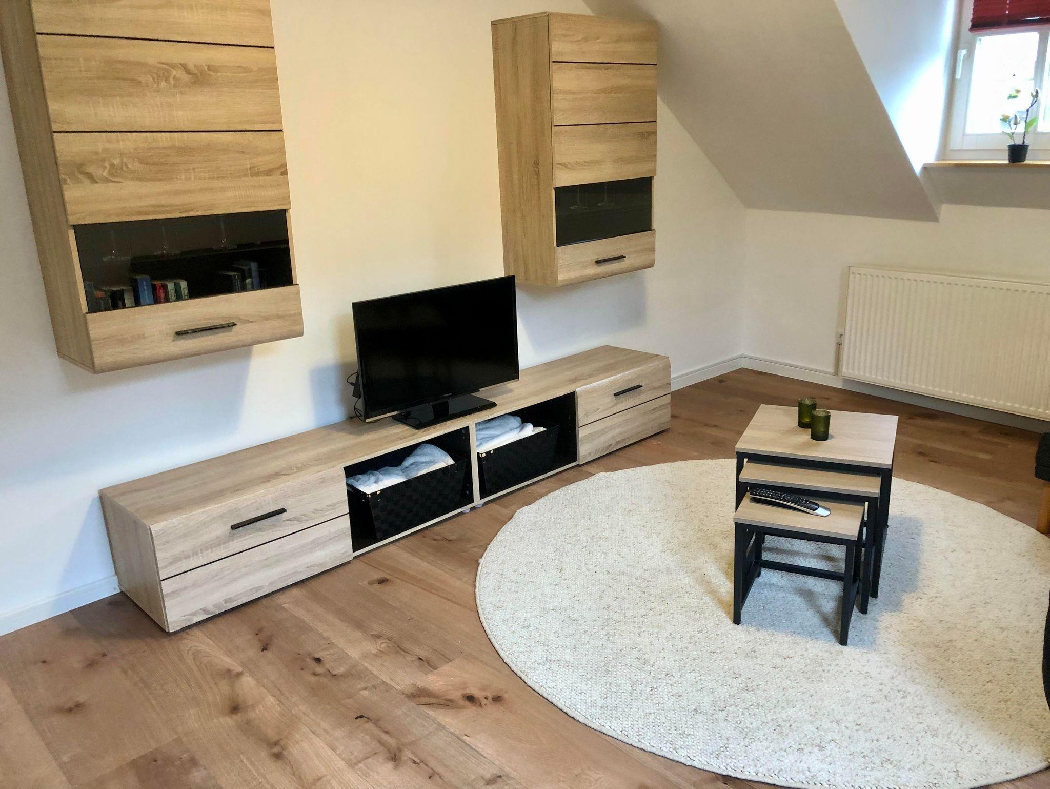 Im schicken Wohnzimmer können sie die vorhandene Couch umwandeln in ein Bett für eine Person. Der Raum ist mit einer Wohnwand und einen Sideboard ausgestattet. Hier steht auch ein TV-Gerät für ihre Unterhaltung mit SAT-Receiver. Ein HDMI Port ist vorhanden, sodass Sie gerne Ihr eigenes Entertainment mitbringen können (z.B. via Fire TV Stick). Auch Bücher zum Schmökern sowie Gesellschaftsspiele können für einen angenehmen Aufenthalt sorgen.