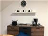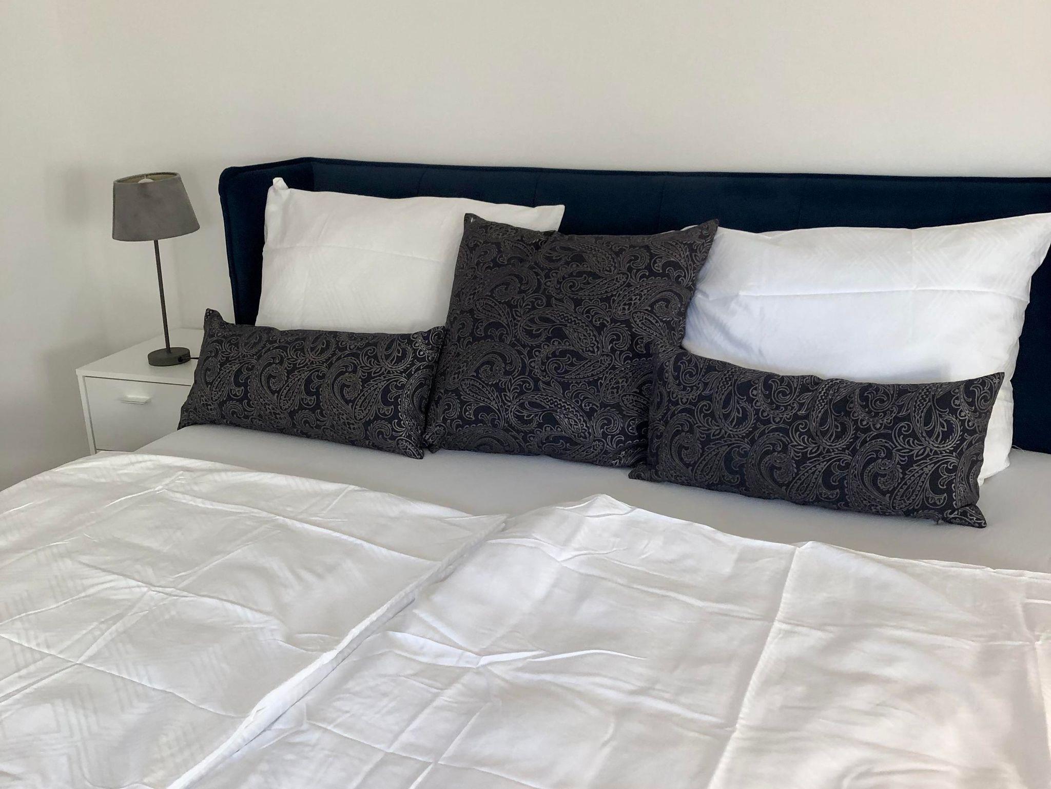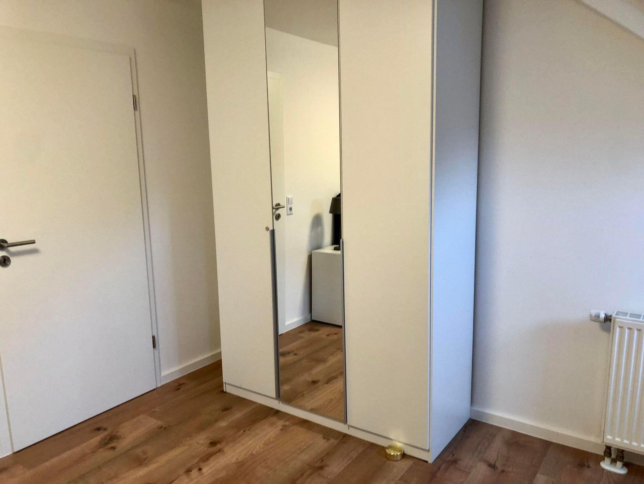 Im Schlafzimmer erwartet sie ein Boxspringbett 180/200 cm, ein dreitüriger Kleiderschrank mit einer Spiegeltür, einem kleinen Safe für Ihre Wertgegenstände sowie genügend Kleiderbügel. Die schönen Spossenfenster sind mit Verdunklungsrollos ausgestattet, so dass Sie ungestört ihren Schlaf genießen können.