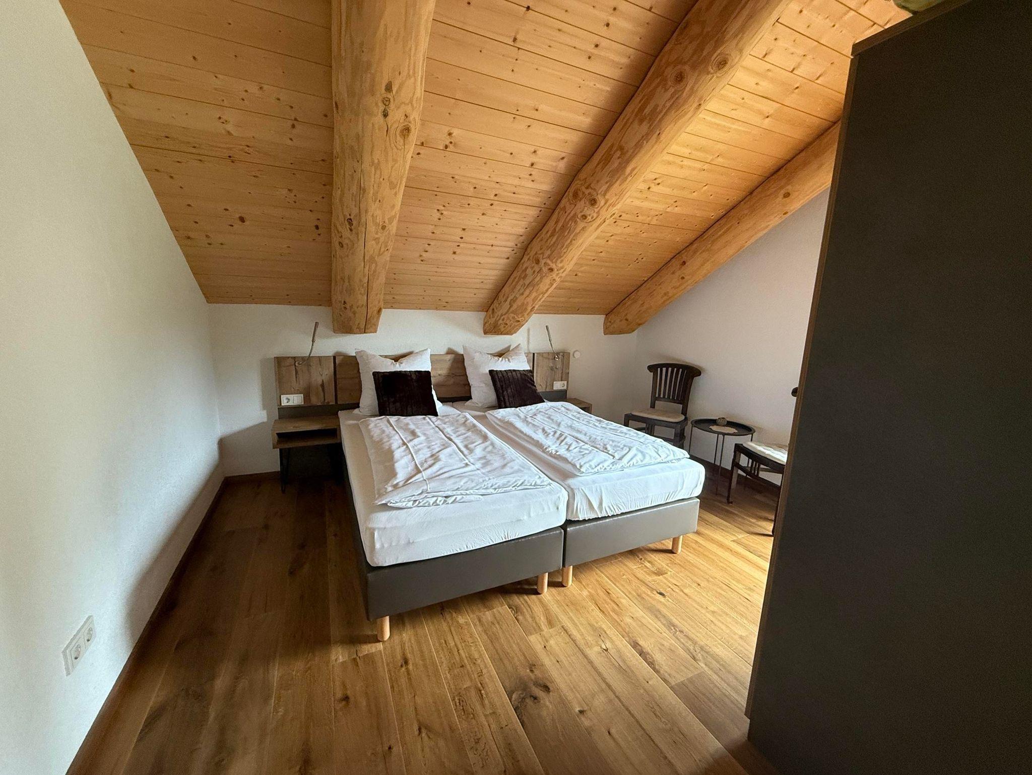 Auf großzügigen 78m² im oberen Stockwerk bietet unsere Ferienwohnung ausreichend Platz für 2 bis 5 Personen. Freuen Sie sich auf zwei gemütliche Schlafzimmer mit komfortablen Doppelbetten, in denen Sie sich nach einem ereignisreichen Tag im Nationalpark wunderbar erholen können.