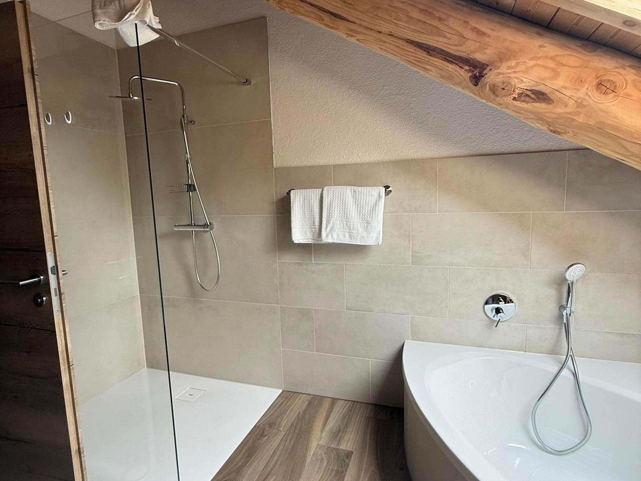 Das Badezimmer ist mit einer Dusche und einer Badewanne ausgestattet und bietet somit höchsten Komfort für Ihre persönliche Wellnesszeit. Nach einem langen Tag voller Erkundungen im Nationalpark können Sie hier den Alltag hinter sich lassen und einfach abschalten.