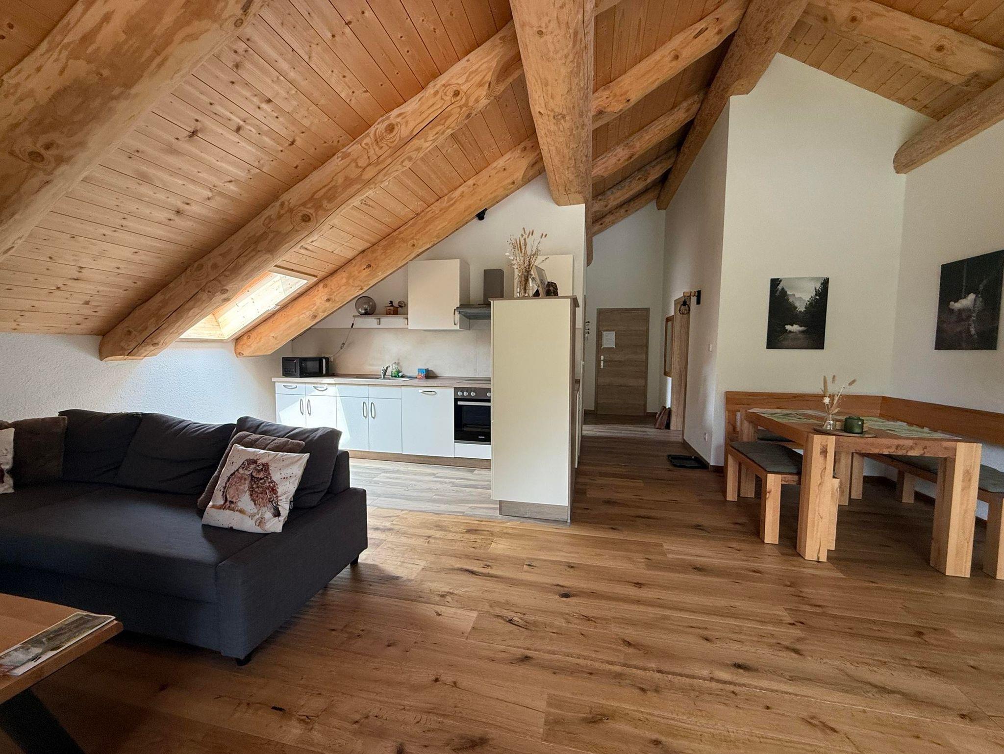 Eule Die geräumige Ferienwohnung „Eule“ im Obergeschoss bietet Platz für bis zu 5 Personen und verfügt über einen offenen Wohnbereich mit Balkon und herrlichem Waldblick.