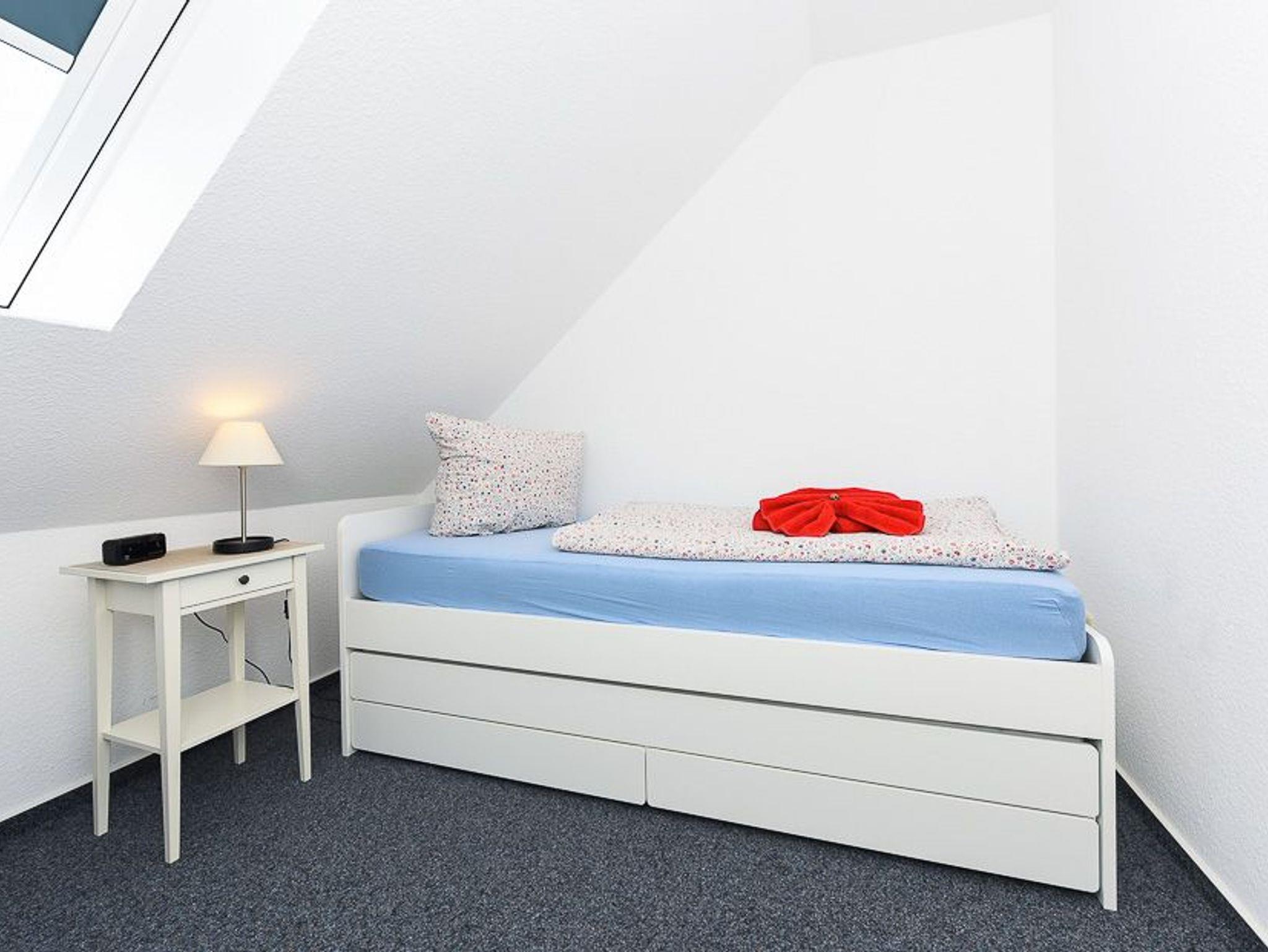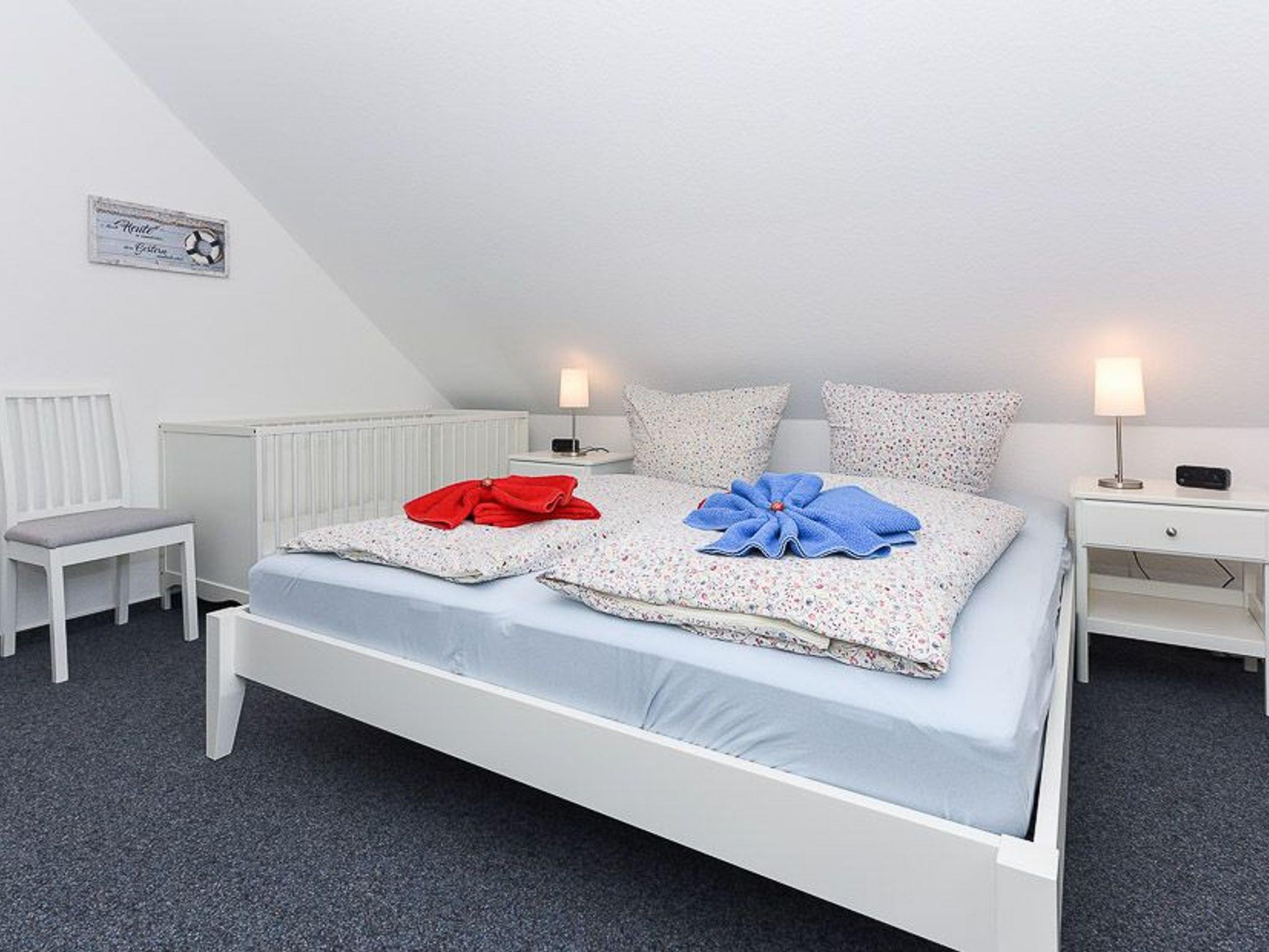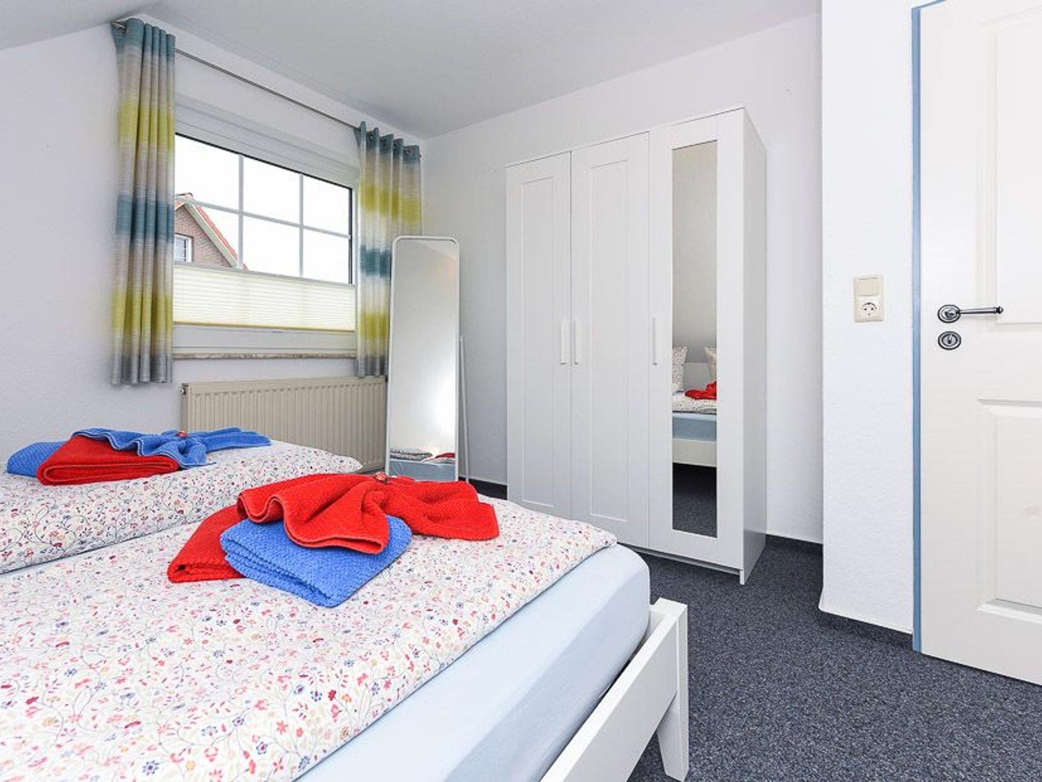 Die Wohnung befindet sich im 1. Obergeschoss. Es sind zwei Schlafräume vorhanden. Die Wohnung ist mit einem Doppelbett im Schlafzimmer und einem im seperatem Raum stehendem Einzelbett mit ausziehbarem Bettkasten mit Liegefläche ausgestattet (optimalerweise für Kinder).