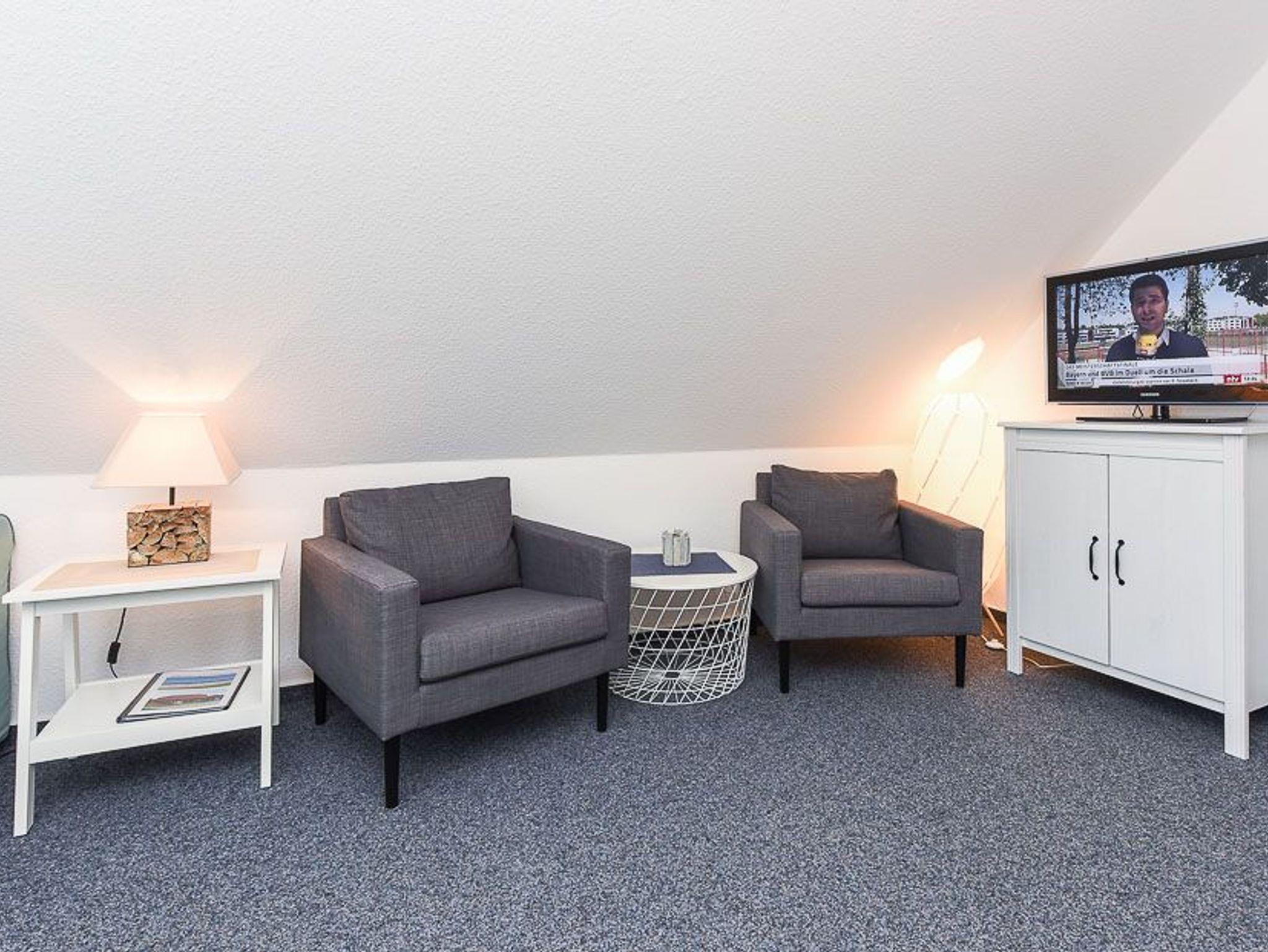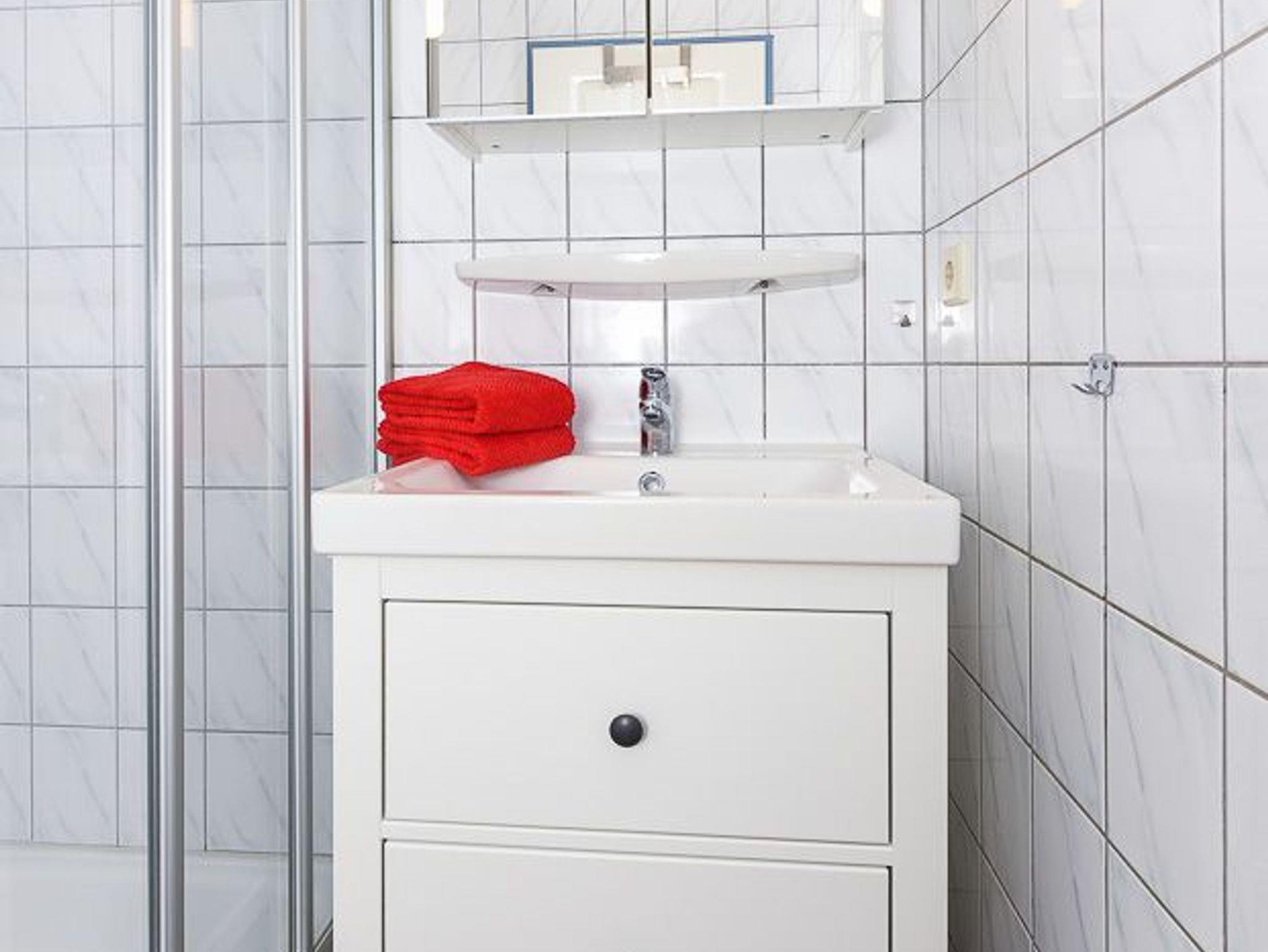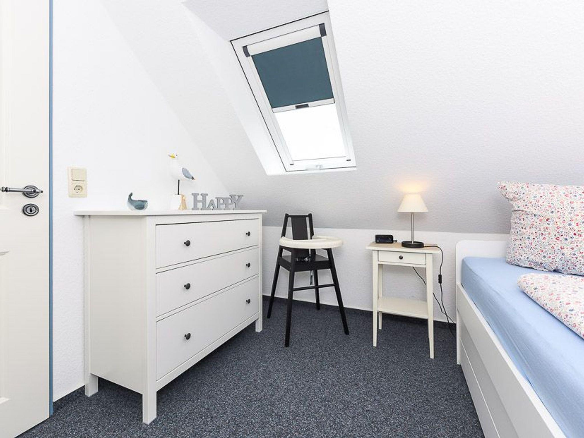 Die Wohnung befindet sich im 1. Obergeschoss. Es sind zwei Schlafräume vorhanden. Die Wohnung ist mit einem Doppelbett im Schlafzimmer und einem im seperatem Raum stehendem Einzelbett mit ausziehbarem Bettkasten mit Liegefläche ausgestattet (optimalerweise für Kinder).