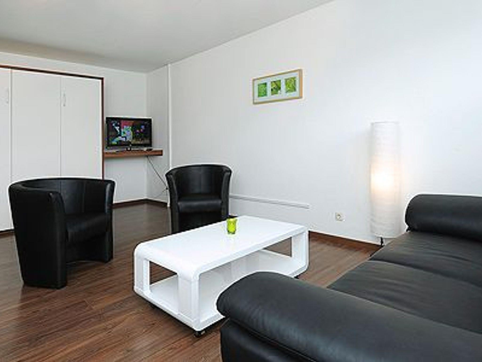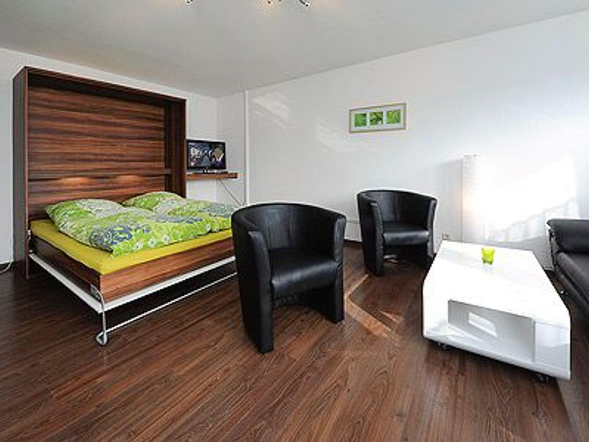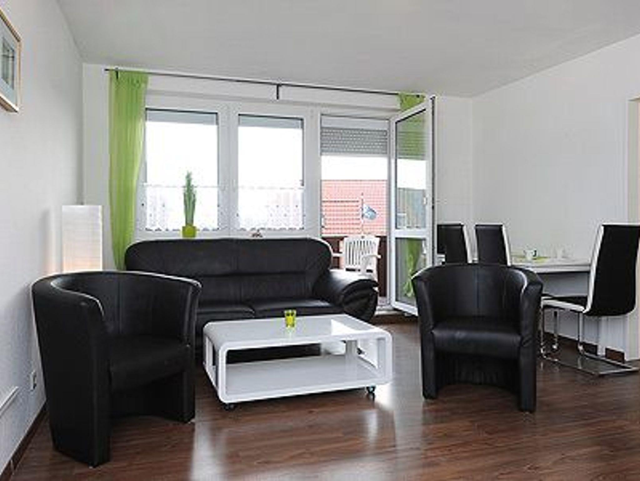 Größe ca. 47 Quadratmeter, Wohn- und Schlafraum, Küche, zweites separates Schlafzimmer/Kinderzimmer, Badezimmer mit Dusche, Waschtisch und WC, Obergeschoss, Balkon, Internetzugang über WLAN möglich, optimal für 2 bis 4 Personen.