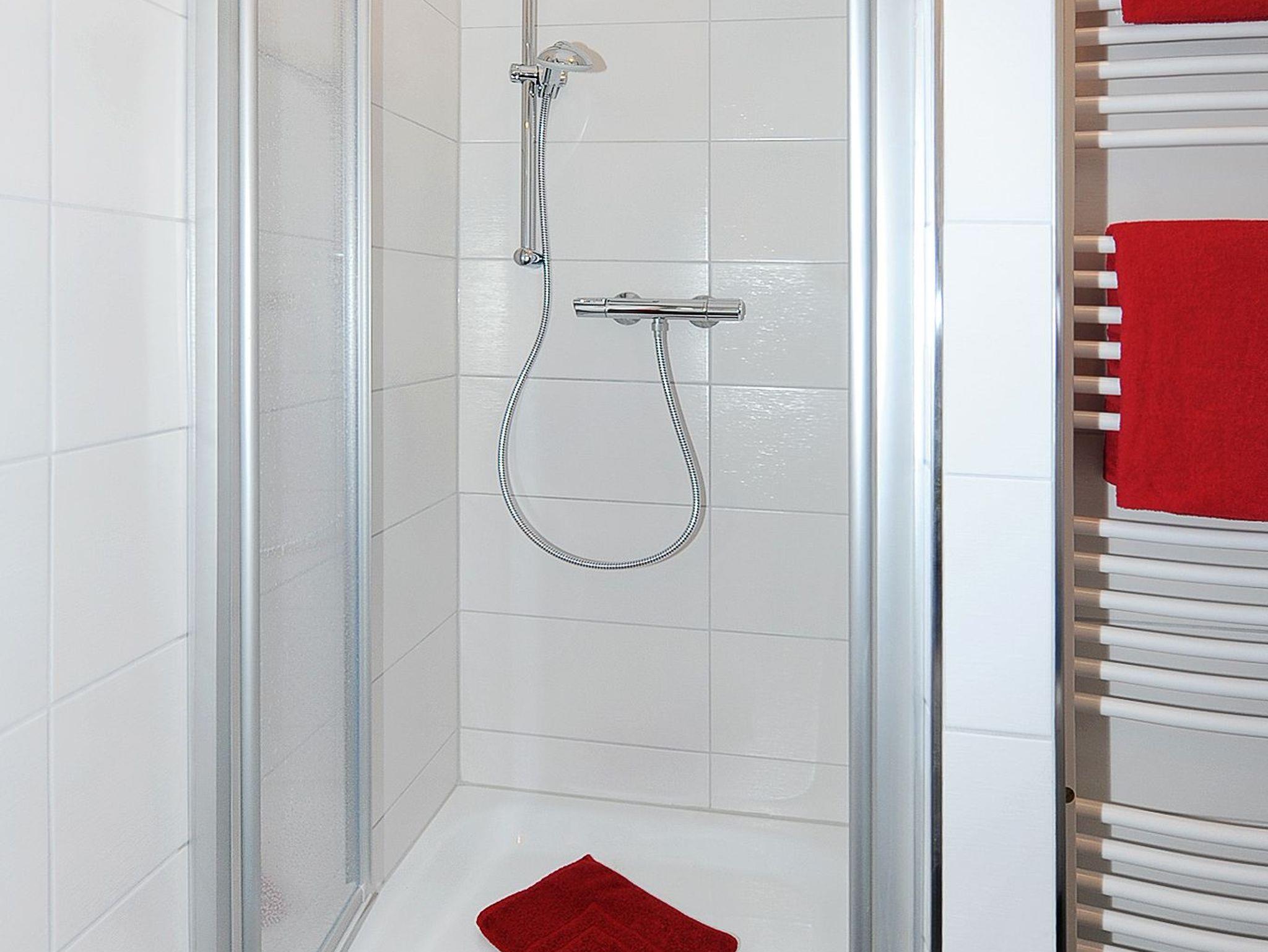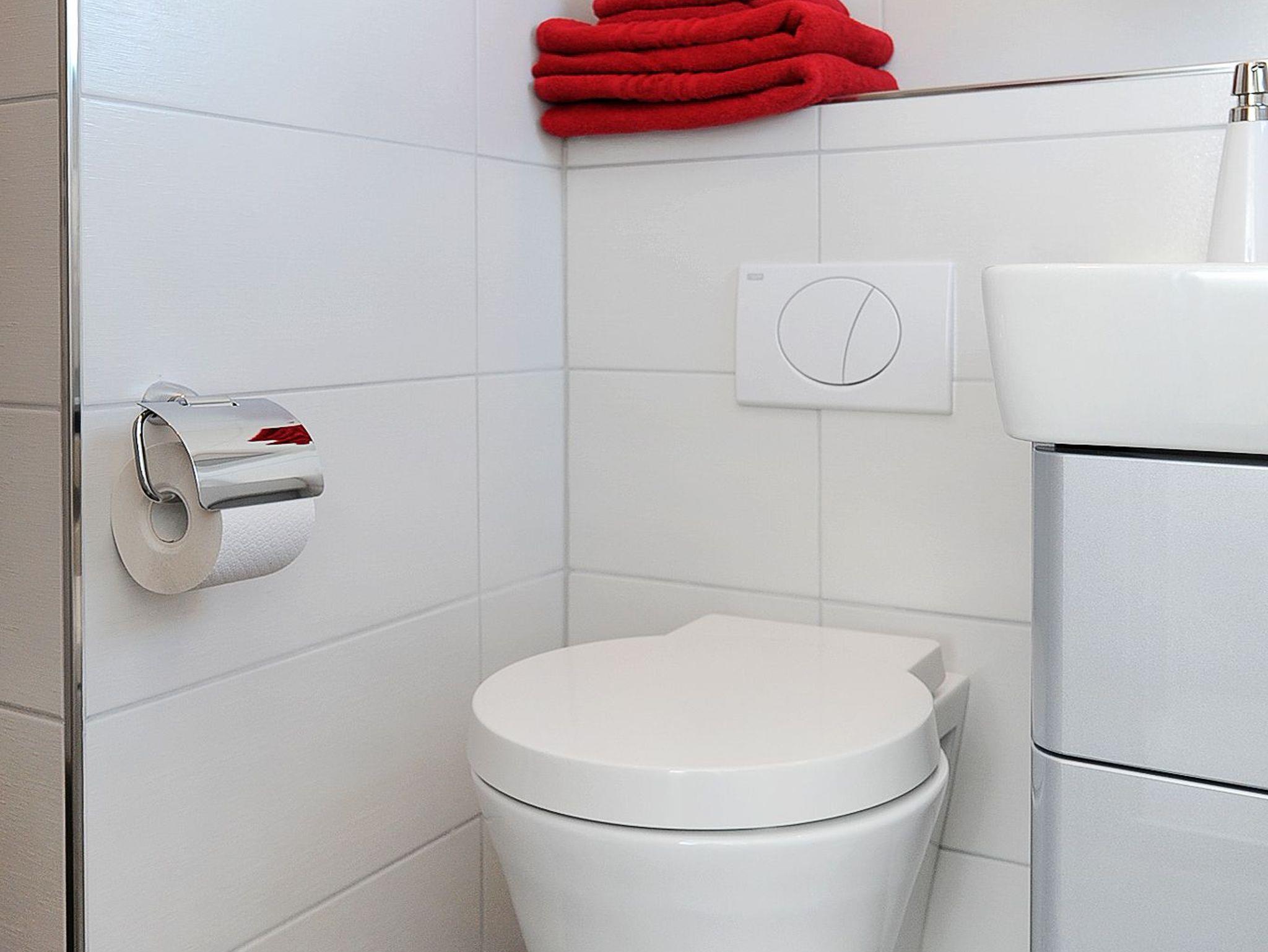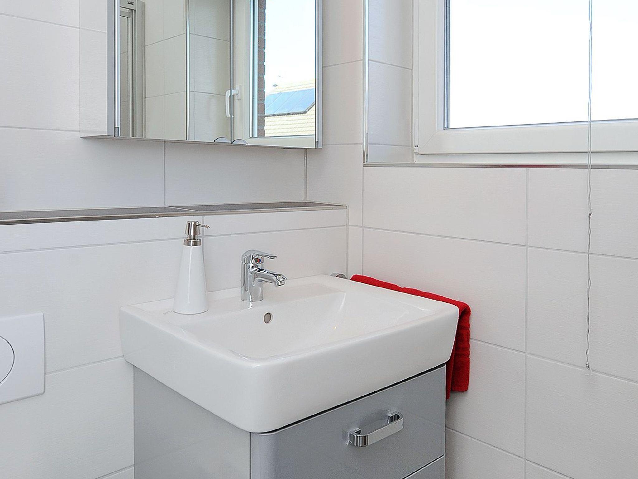 Badezimmer mit Dusche, Waschtisch und WC