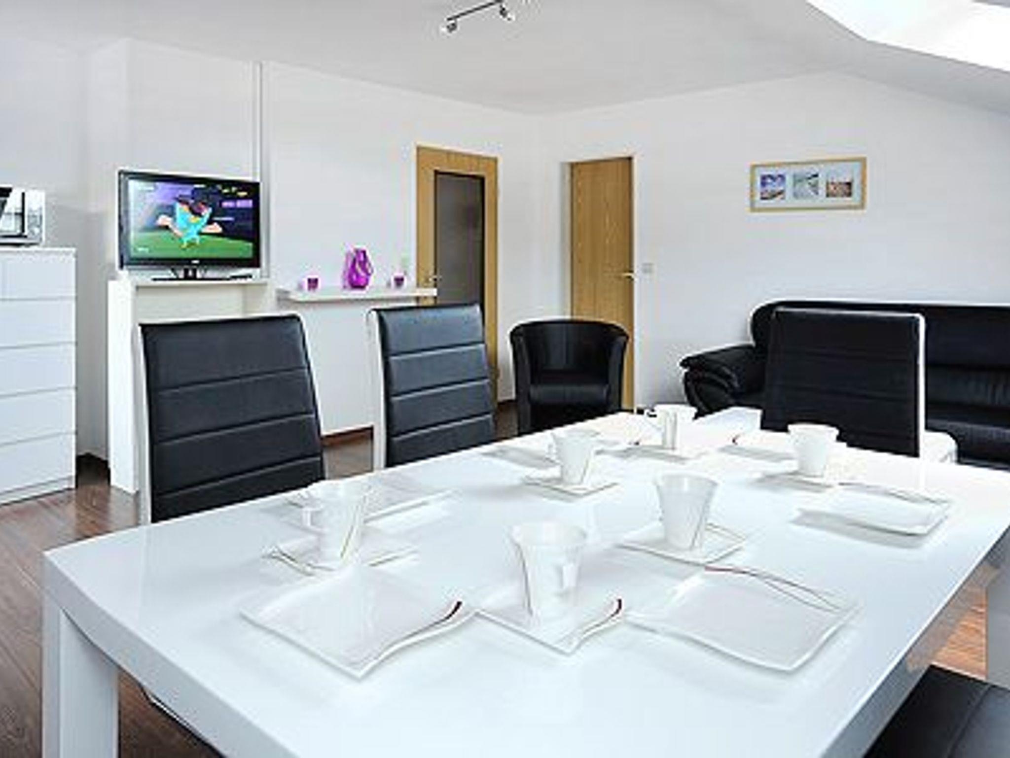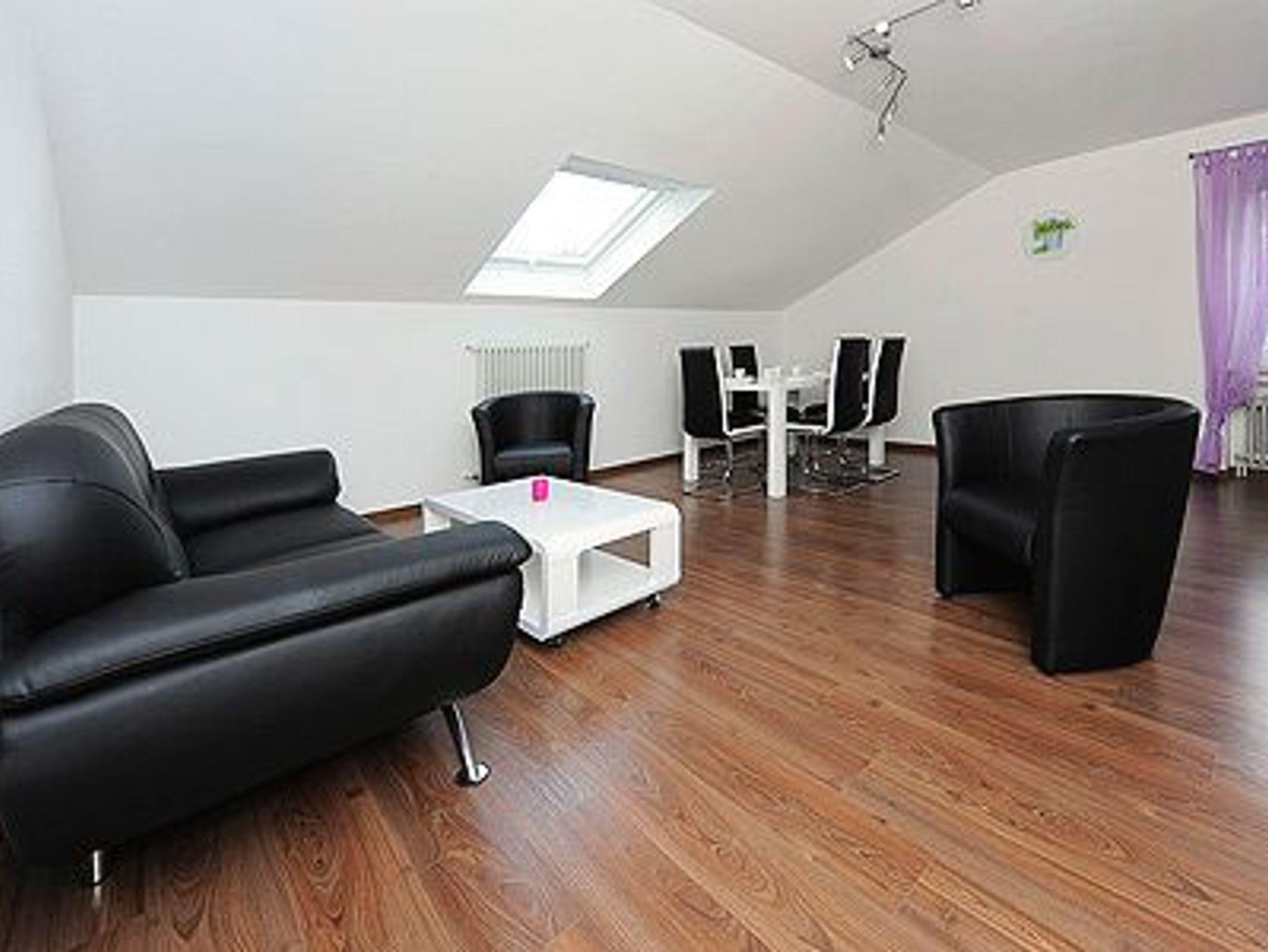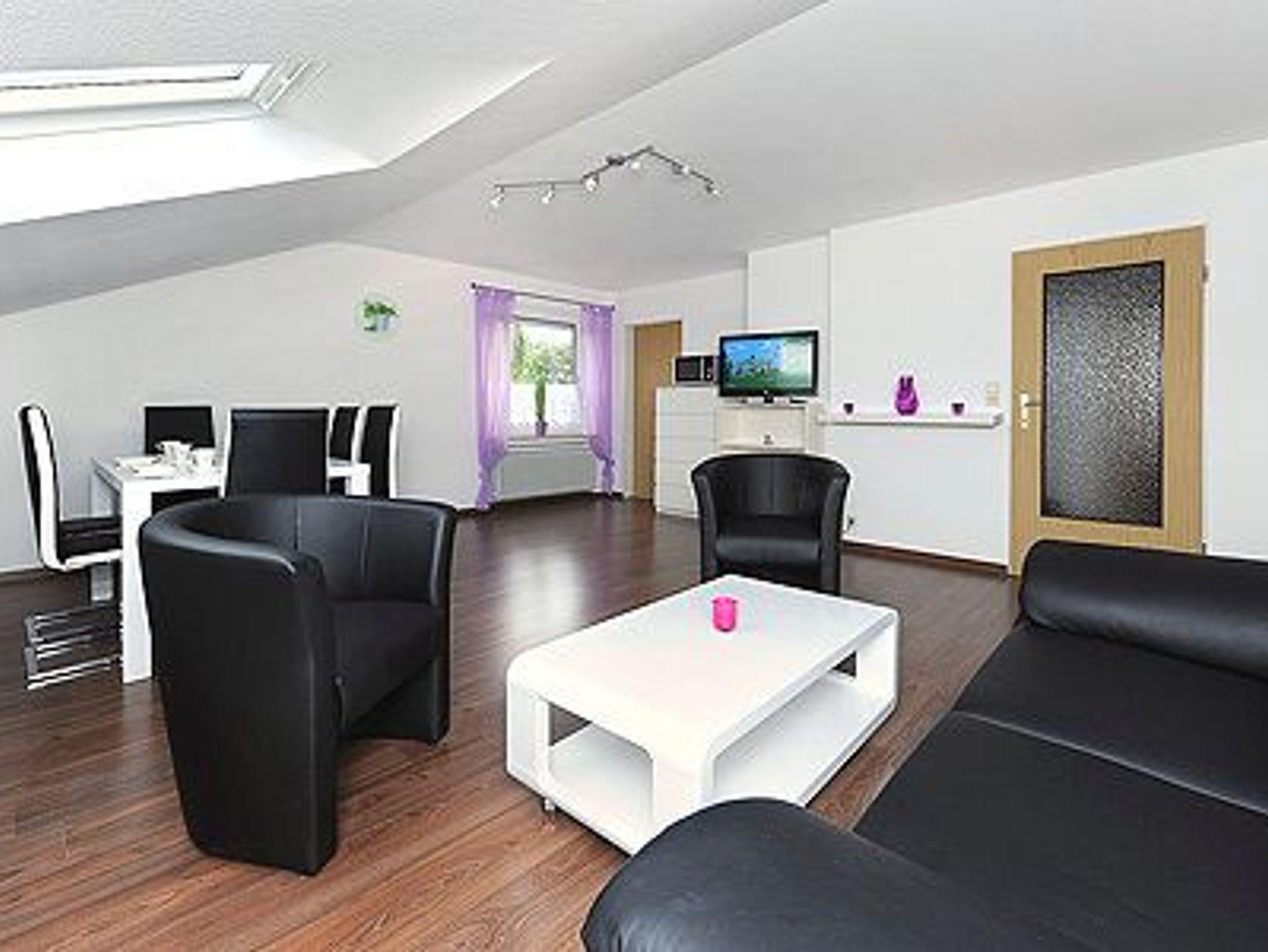 Größe ca. 60 Quadratmeter, Wohnzimmer, Küche, Schlafzimmer, zweites separates, Schlafzimmer/Kinderzimmer, Badezimmer mit Dusche, Waschtisch und WC, Obergeschoss, Internetzugang über WLAN möglich, optimal für 2 bis 5 Personen.