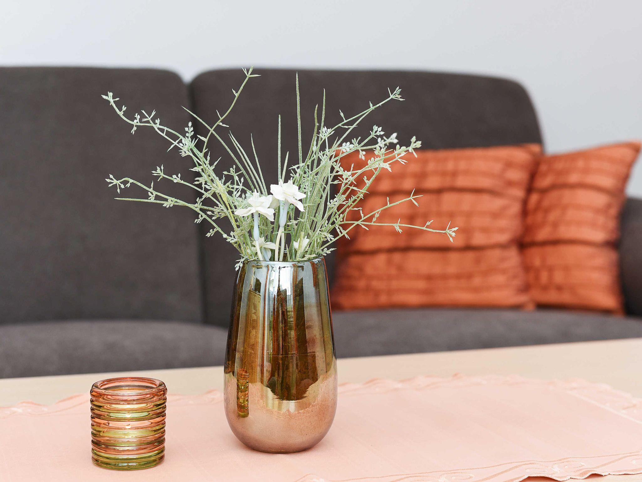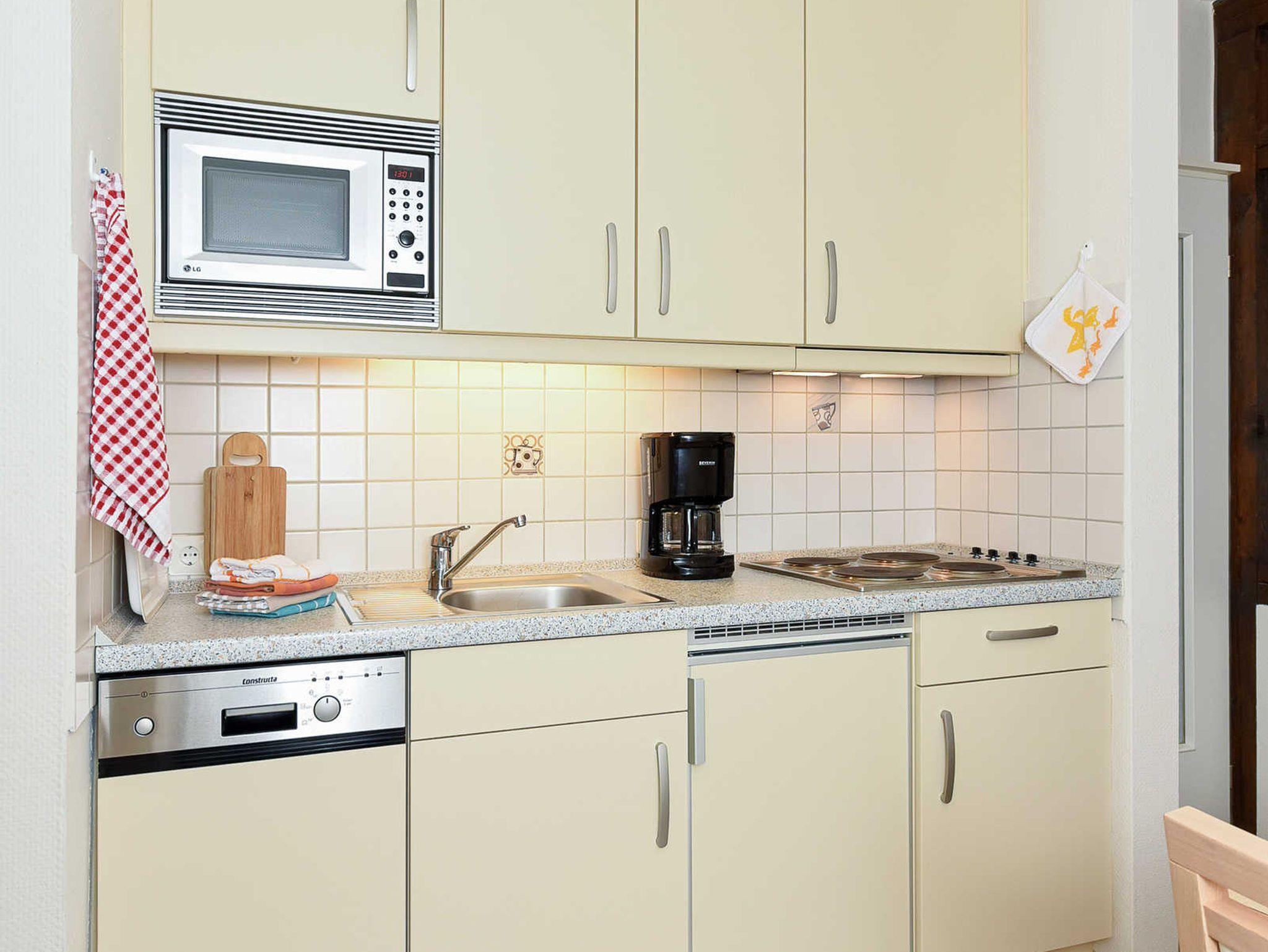 Größe ca. 44 Quadratmeter, Wohnraum mit separatem Küchenteil bei offener Raumgestaltung, Schlafzimmer, zweites separates Schlafzimmer/Kinderzimmer, Badezimmer mit Dusche, Waschtisch und WC, Erdgeschoss, Terrasse, optimal für 2 bis 4 Personen.