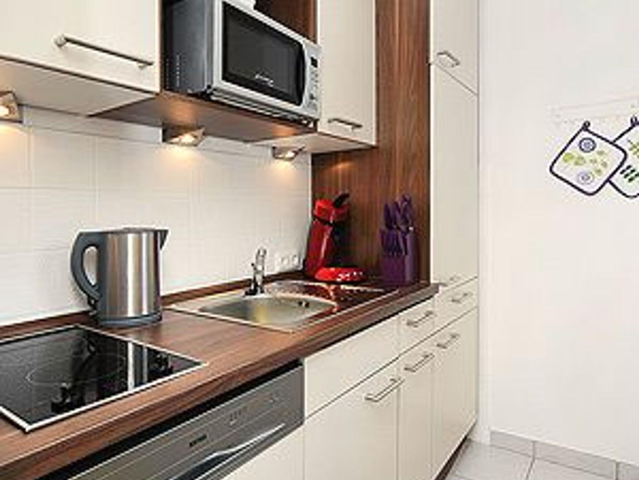 Größe ca. 45 Quadratmeter, Wohn- und Schlafraum mit abteiltem Küchenbereich, Badezimmer mit Dusche, Waschtisch und WC, Obergeschoss, Balkon, Internetzugang über WLAN möglich, optimal für 2 Personen.