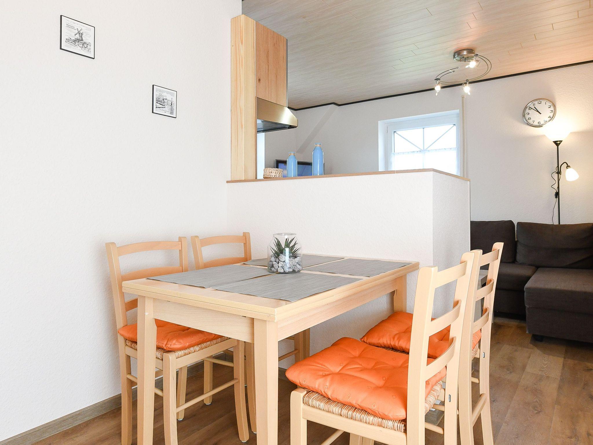 Größe ca. 50 Quadratmeter, Wohnraum mit integrierter Küche und mit Schlafmöglichkeit, Schlafzimmer, Badezimmer mit Dusche, Waschtisch und WC, Obergeschoss, Balkon, optimal für 2 bis 4 Personen.