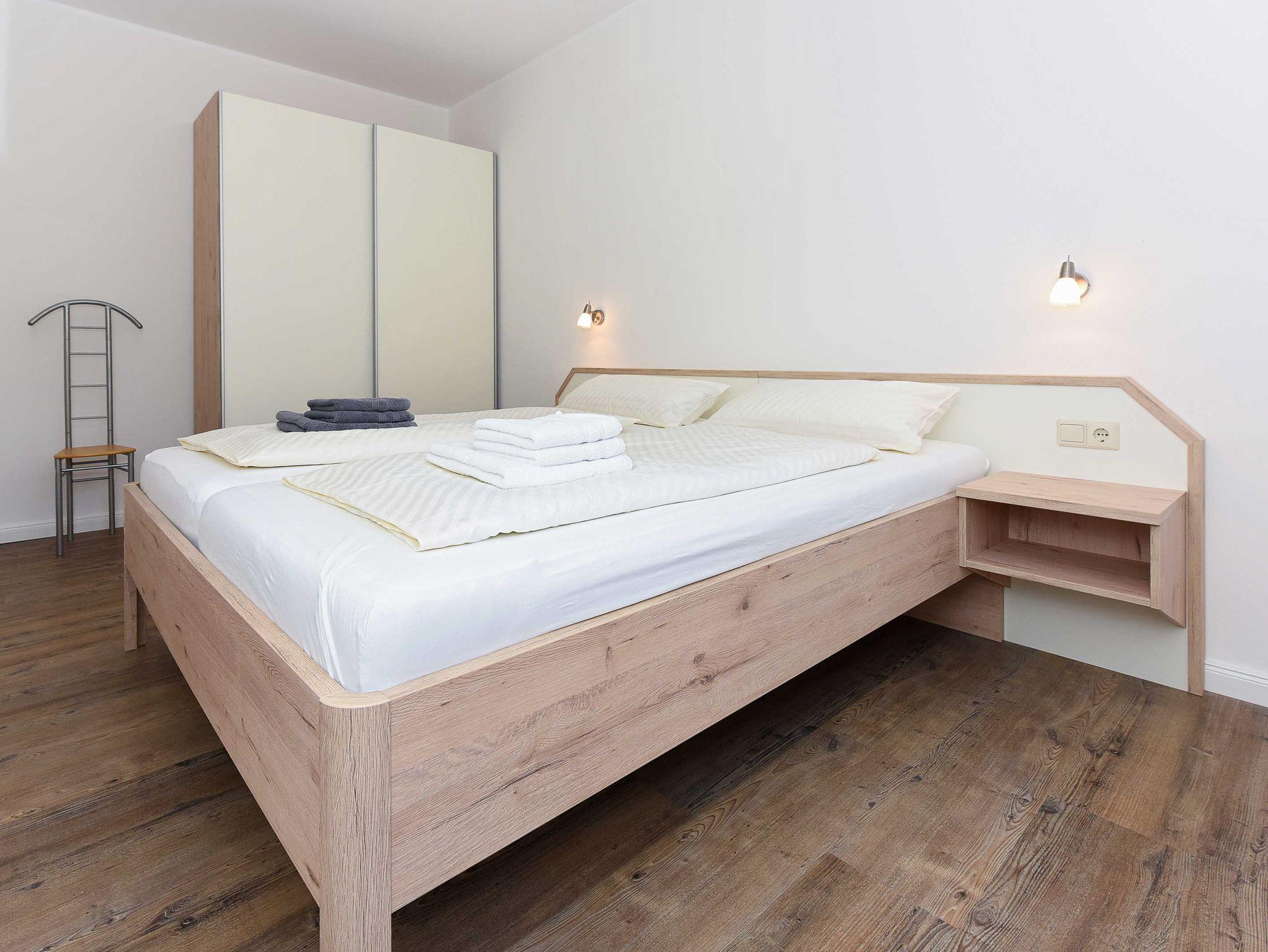 Größe ca. 66 Quadratmeter, Wohnraum mit integrierter Küche und Essgruppe, Schlafzimmer, zweites separates, Schlafzimmer, Badezimmer mit Dusche, Waschtisch und WC, Erdgeschoss, Terrasse, Koffer-/Abstellraum, optimal für 2 bis 4 Personen und zusätzlich ein Kleinkind.