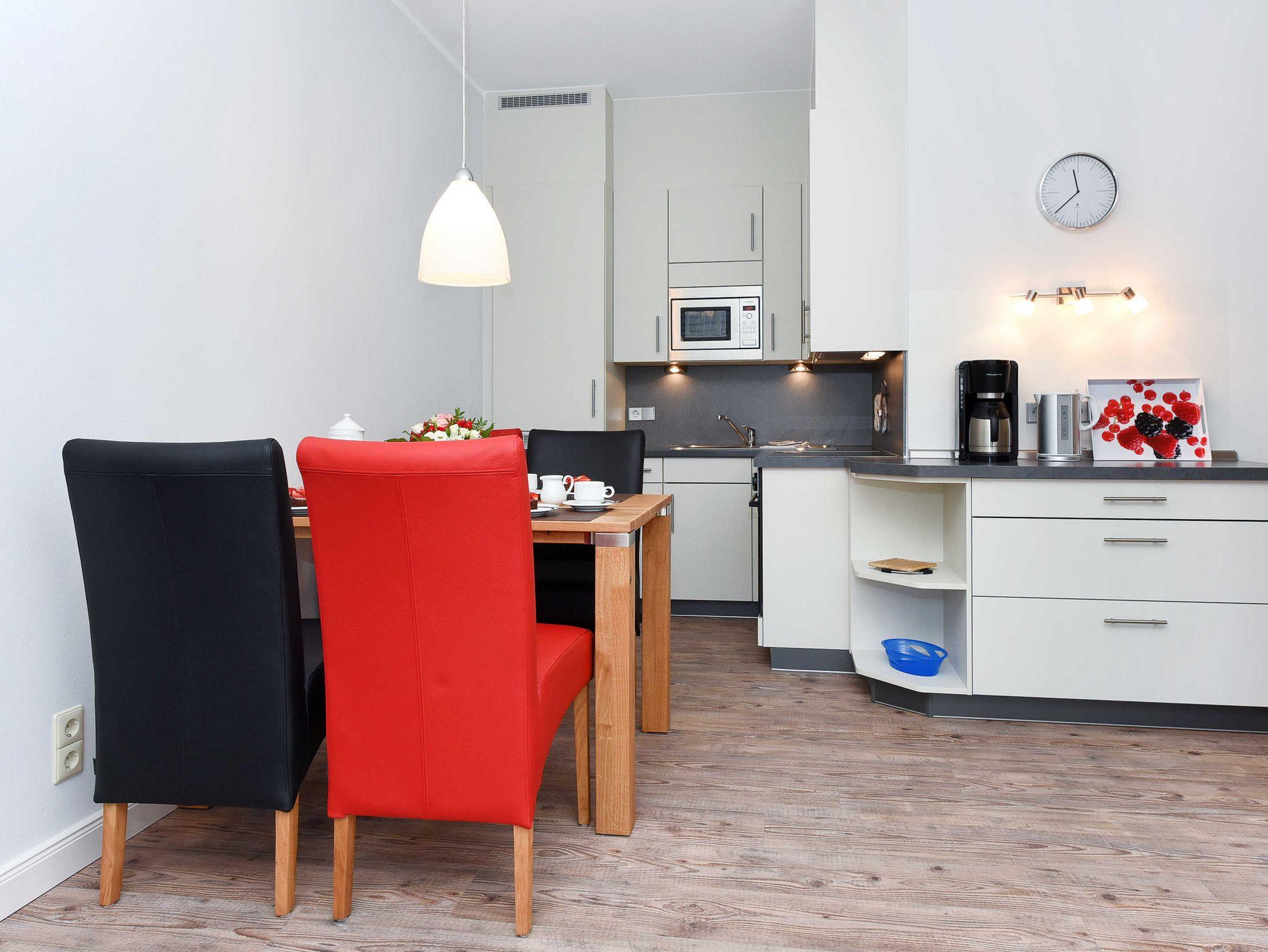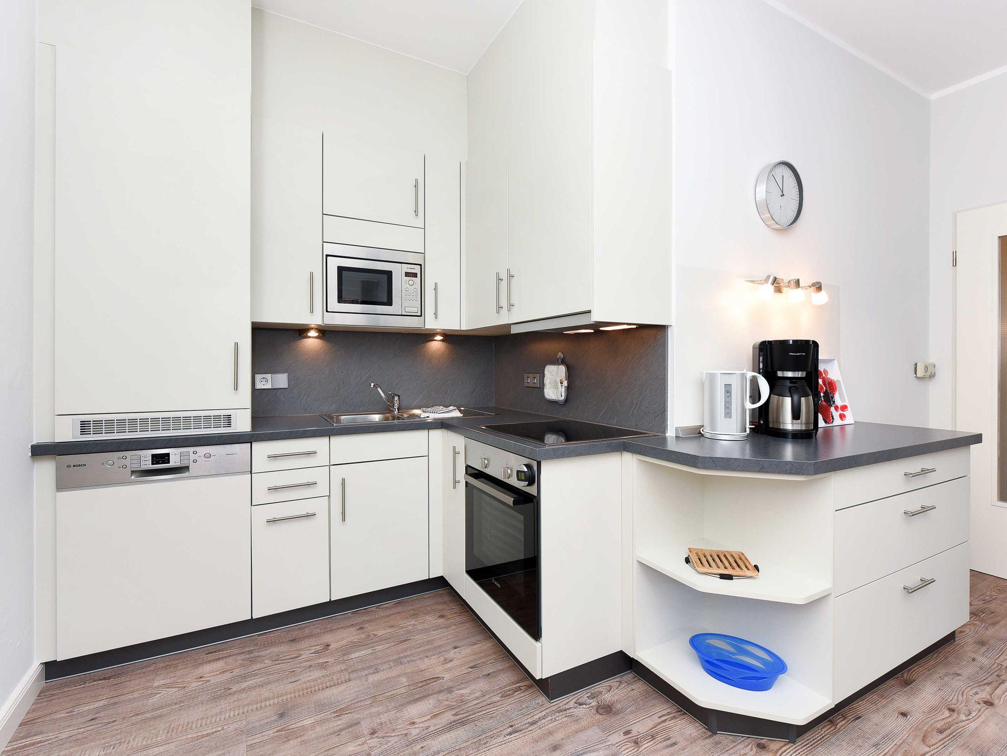 Alle Wohnungen sind speziell schallisolliert und verfügen über Geschirrspülmaschinen und Mikrowellen-Öfen, natürlich auch über voll ausgerüstete moderne Einbauküchen und alles, was man überhaupt im Urlaub benötigen könnte. Waschmaschine und Wäschetrockner stehen unseren Gästen zum Benutzen im Waschraum des Hauses zur Verfügung. In unseren Wohnungen liegen keine Teppichböden; damit möchten wir denjenigen Gästen entgegenkommen, die allergisch auf Staub und Tierhaare reagieren.