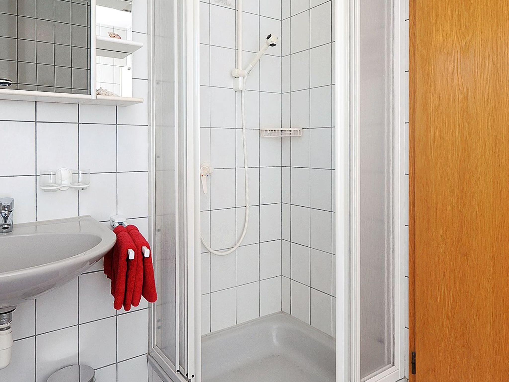 Badezimmer mit Dusche, Waschtisch und WC