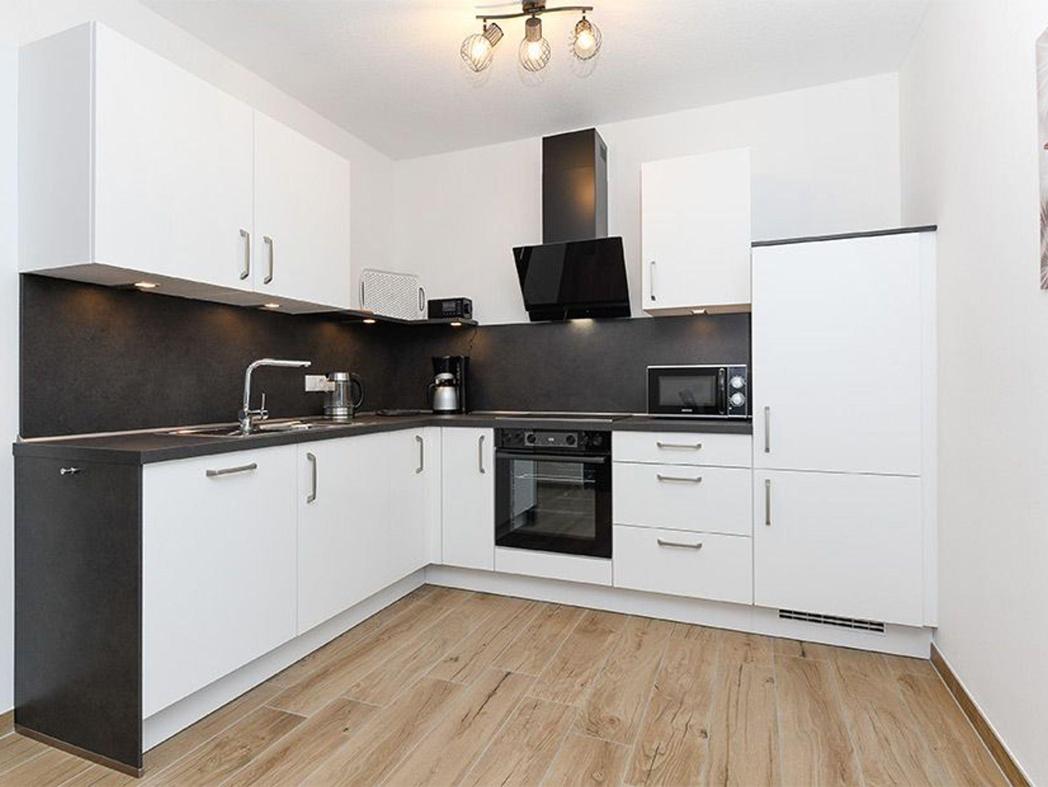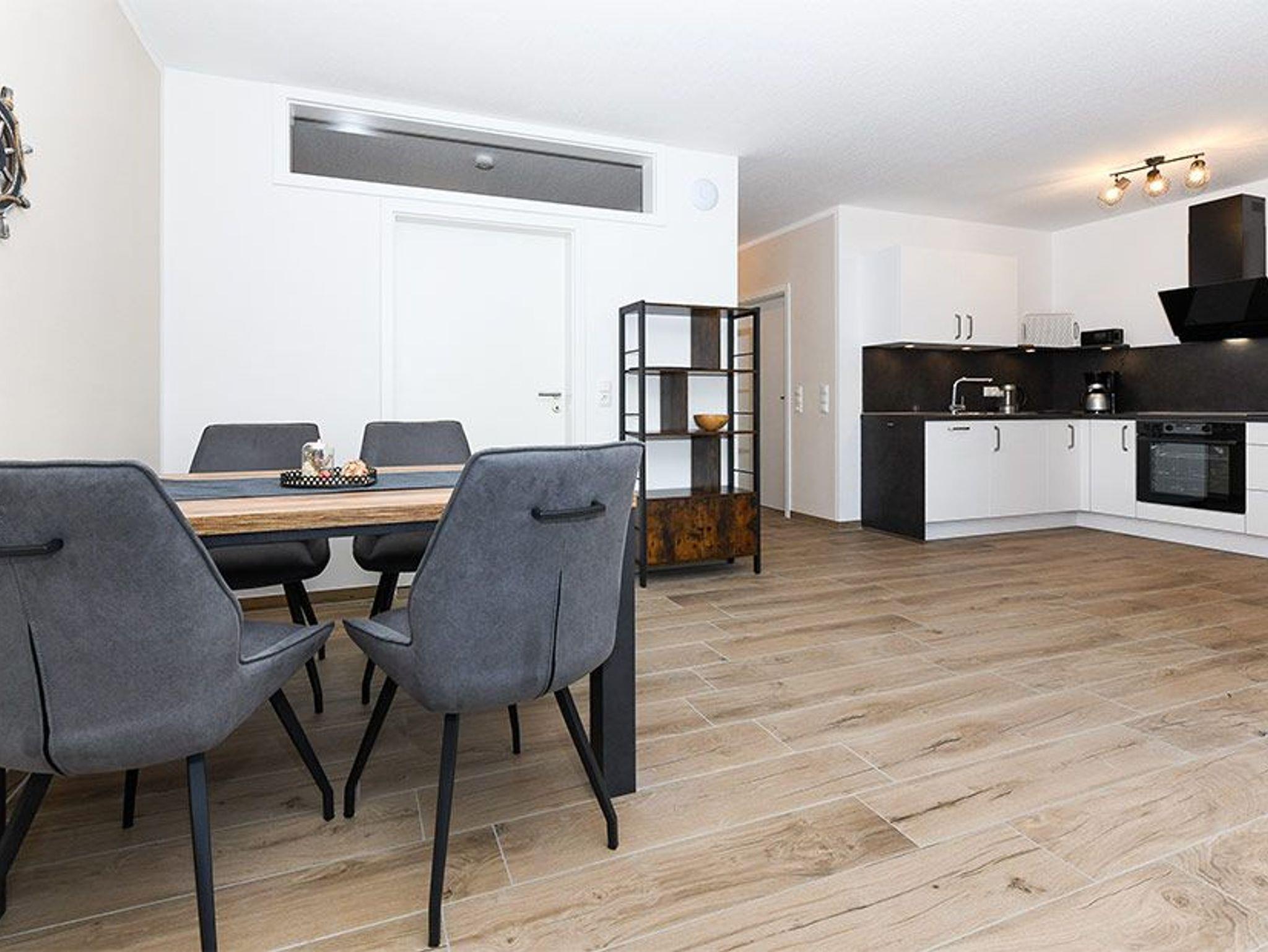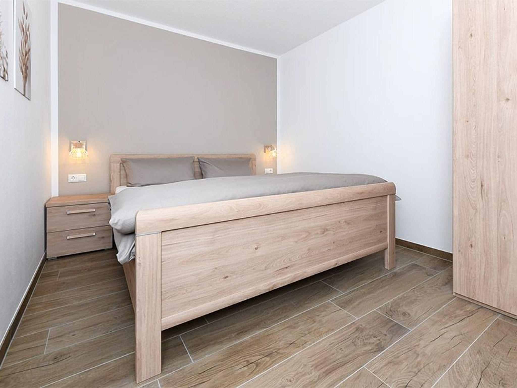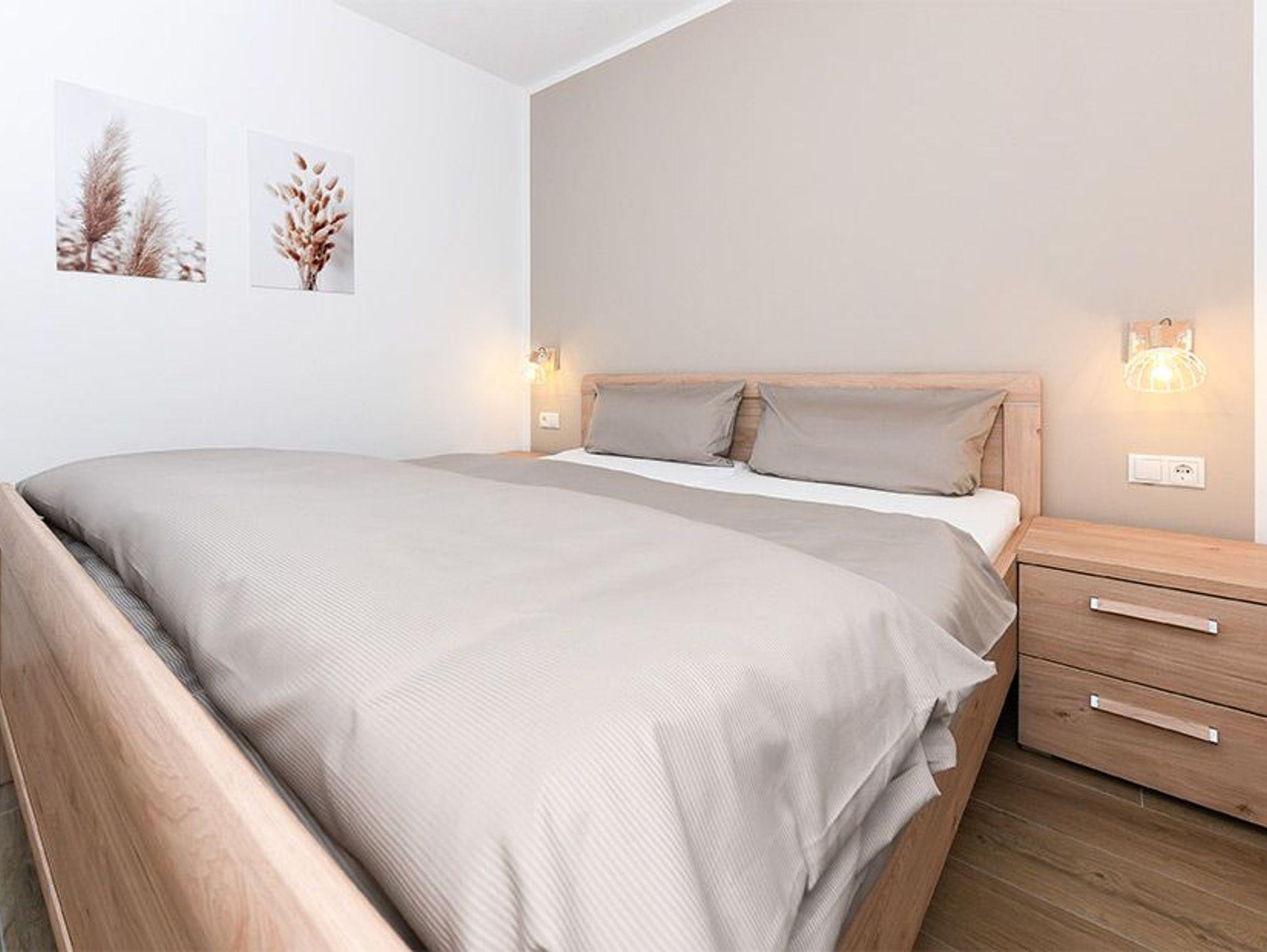 Größe ca. 60 Quadratmeter, Wohnraum mit integrierter Küche, Schlafzimmer, zweites separates Schlafzimmer/Kinderzimmer, Badezimmer mit Badewanne, Dusche, Waschtisch und WC, Erdgeschoss, Terrasse, optimal für 2 bis 4 Personen.