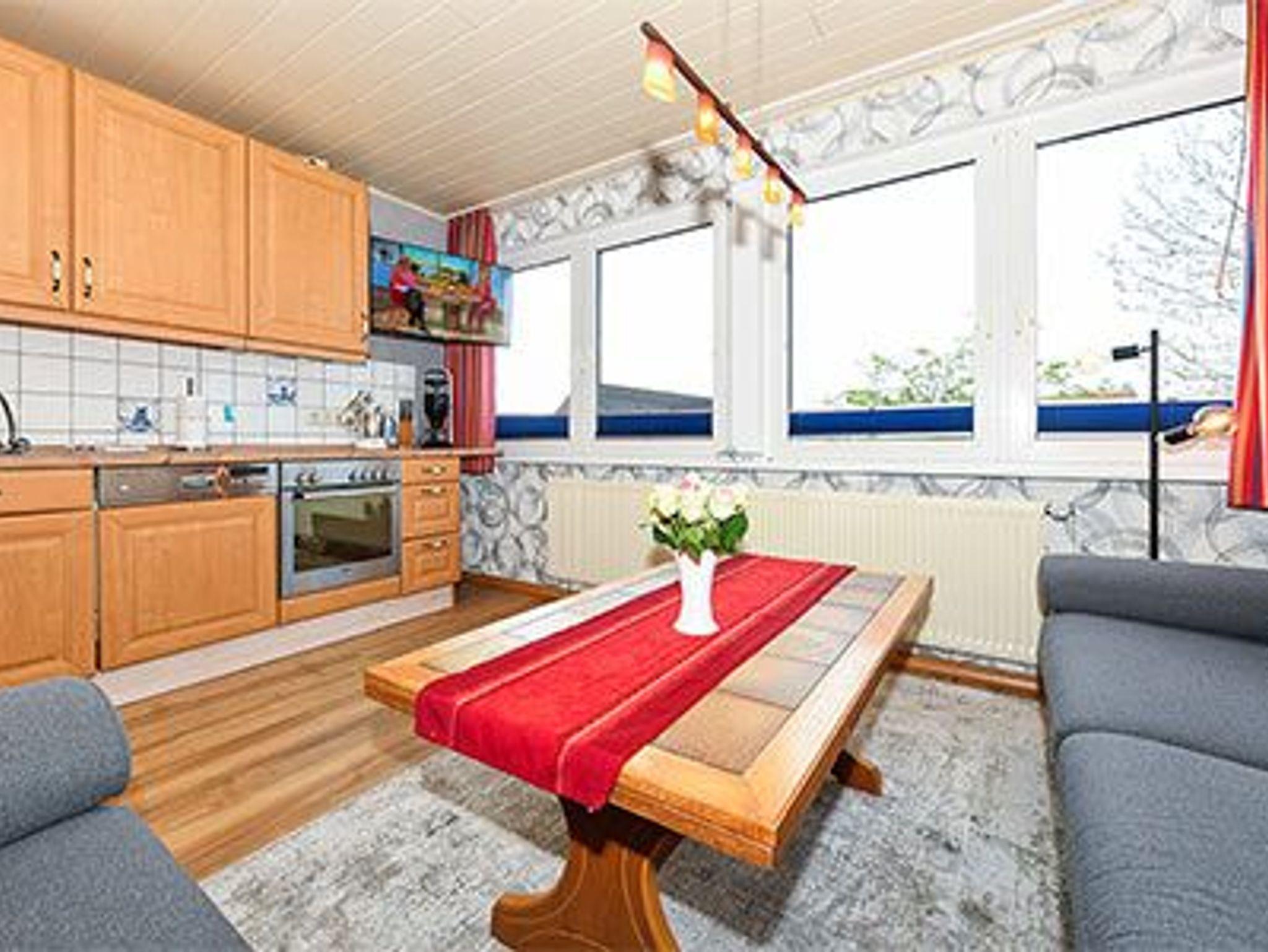 Größe ca. 40 Quadratmeter, Wohnraum mit integrierter Küche, Schlafzimmer, Badezimmer mit Dusche, Waschtisch und WC, Obergeschoss, optimal für 1 bis 2 Erwachsene sowie Kinder ab 10 Jahre.