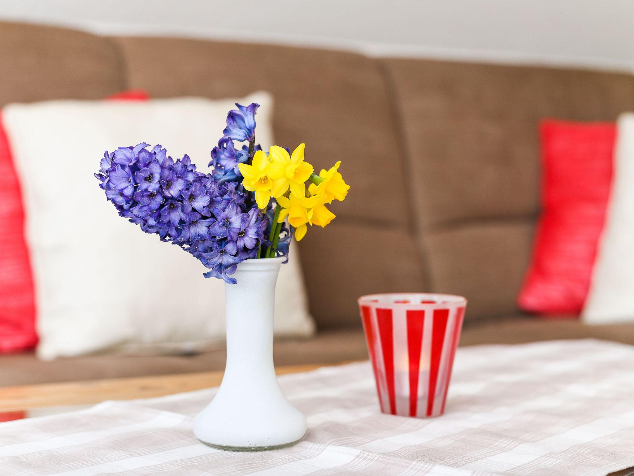 Größe ca. 76 Quadratmeter, Wohnzimmer, Küche abgeteilt bei offener Wohnraumgestaltung, Schlafzimmer, zweites separates Schlafzimmer, drittes separates Schlafzimmer/Kinderzimmer, Badezimmer mit Dusche, Waschtisch und WC, Obergeschoss, Balkon, optimal für 2 bis 5 Personen.