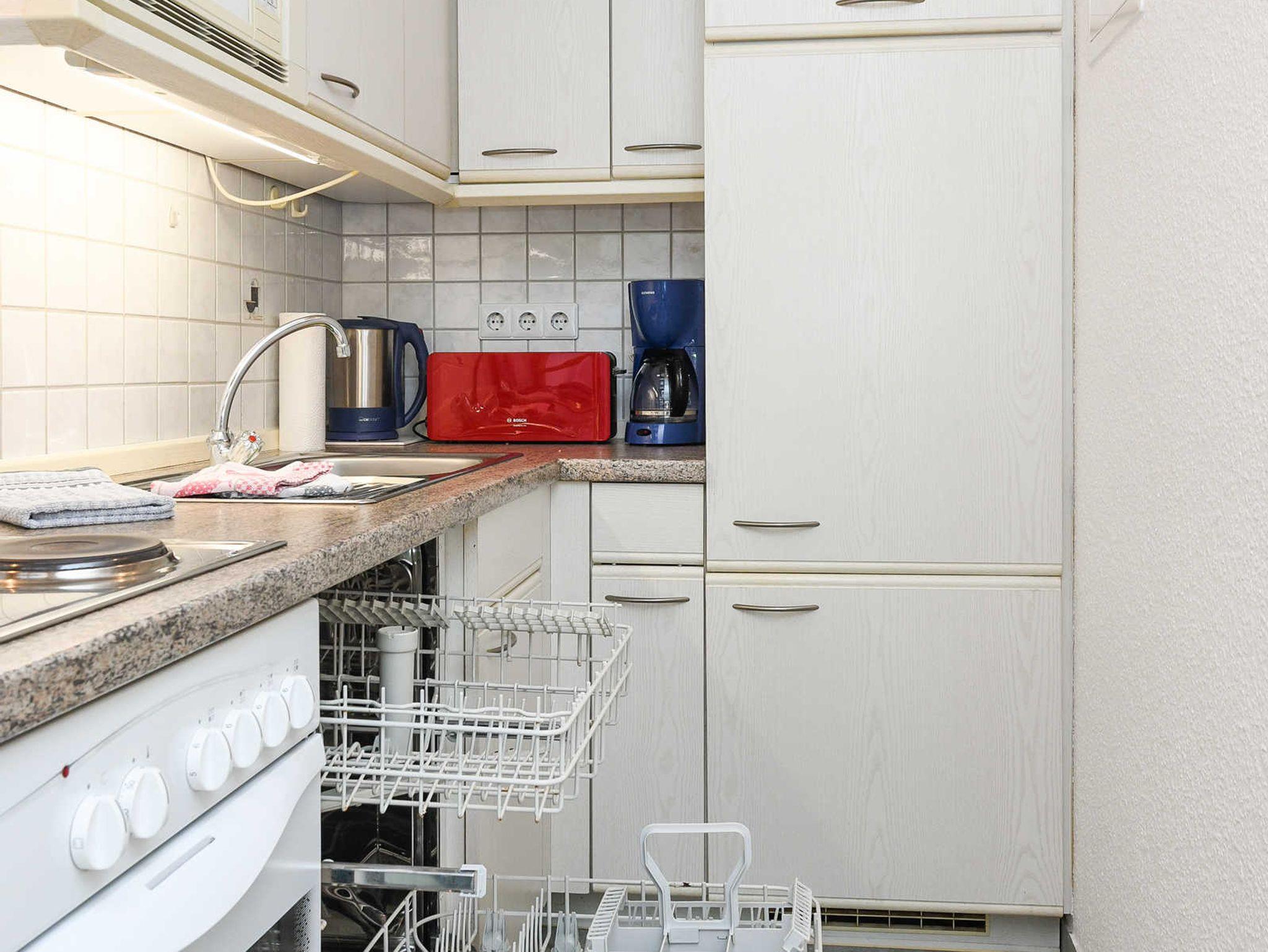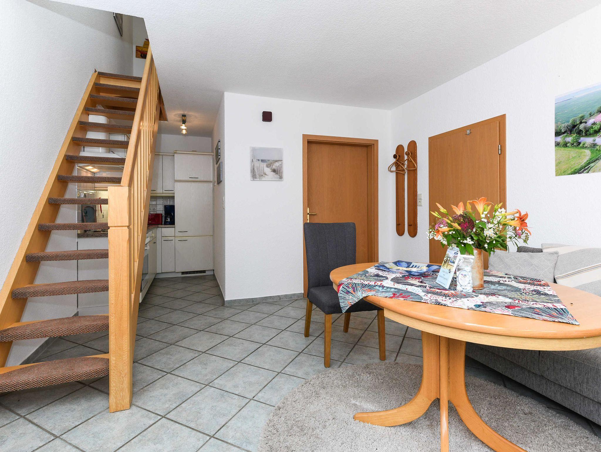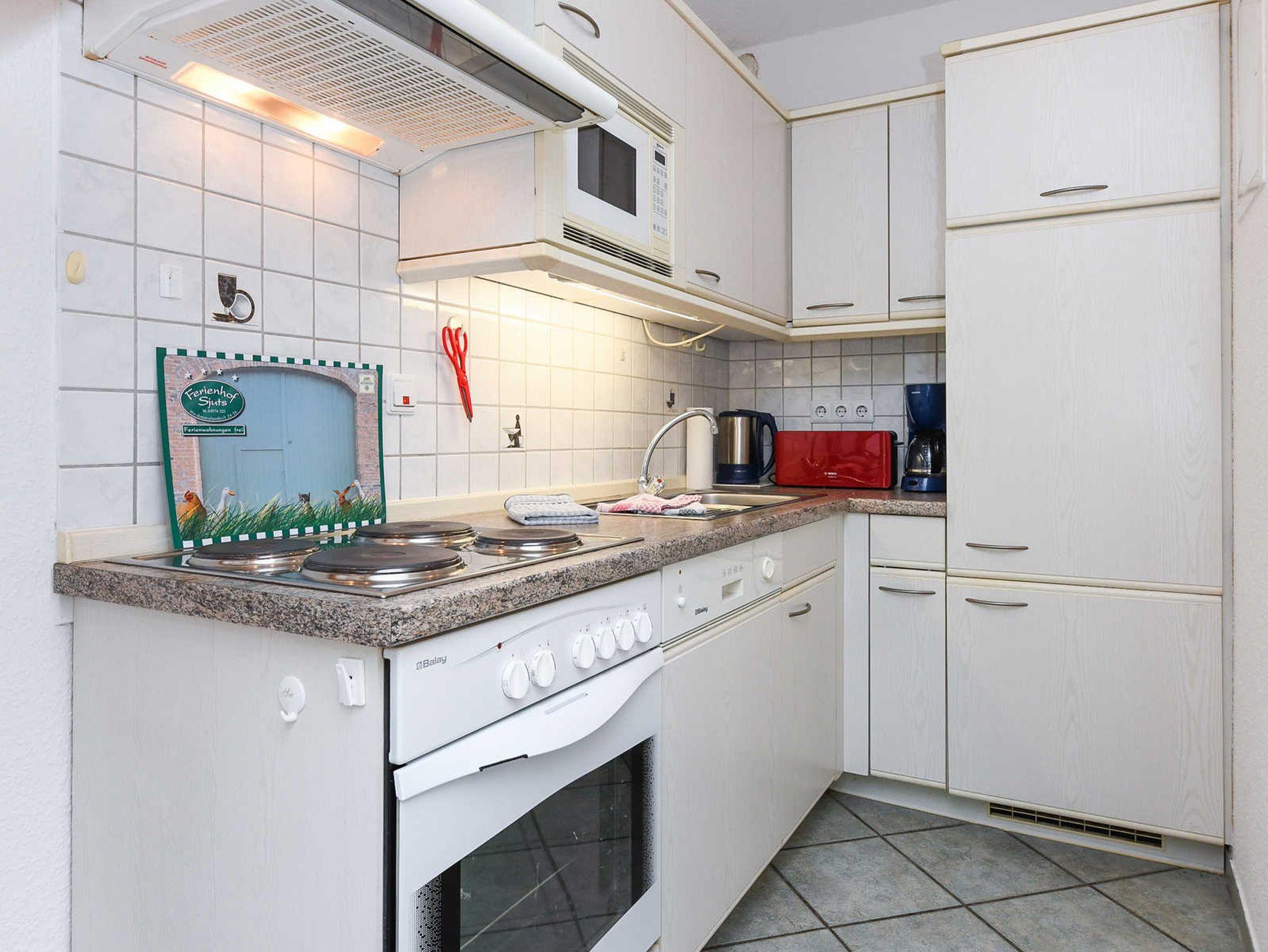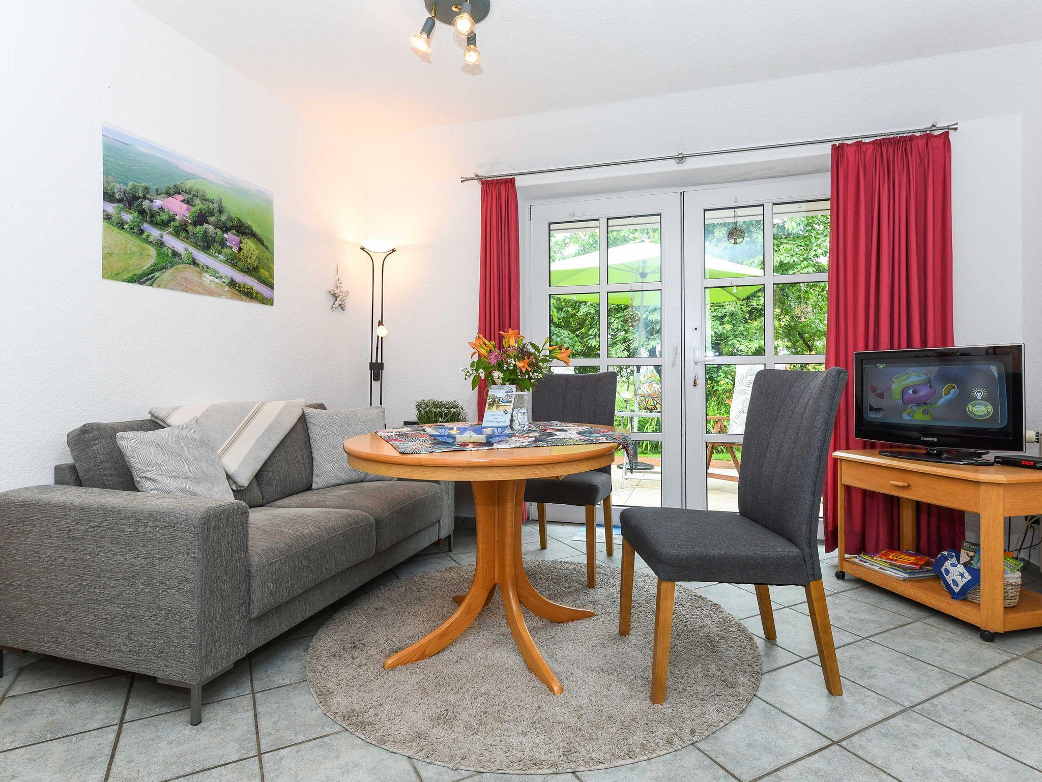 Größe ca. 45 Quadratmeter, Wohnraum mit integrierter Küche, Schlafzimmer, Badezimmer mit Dusche, Waschtisch und WC, Erdgeschoss, Terrasse, optimal für 2 bis 3 Personen.