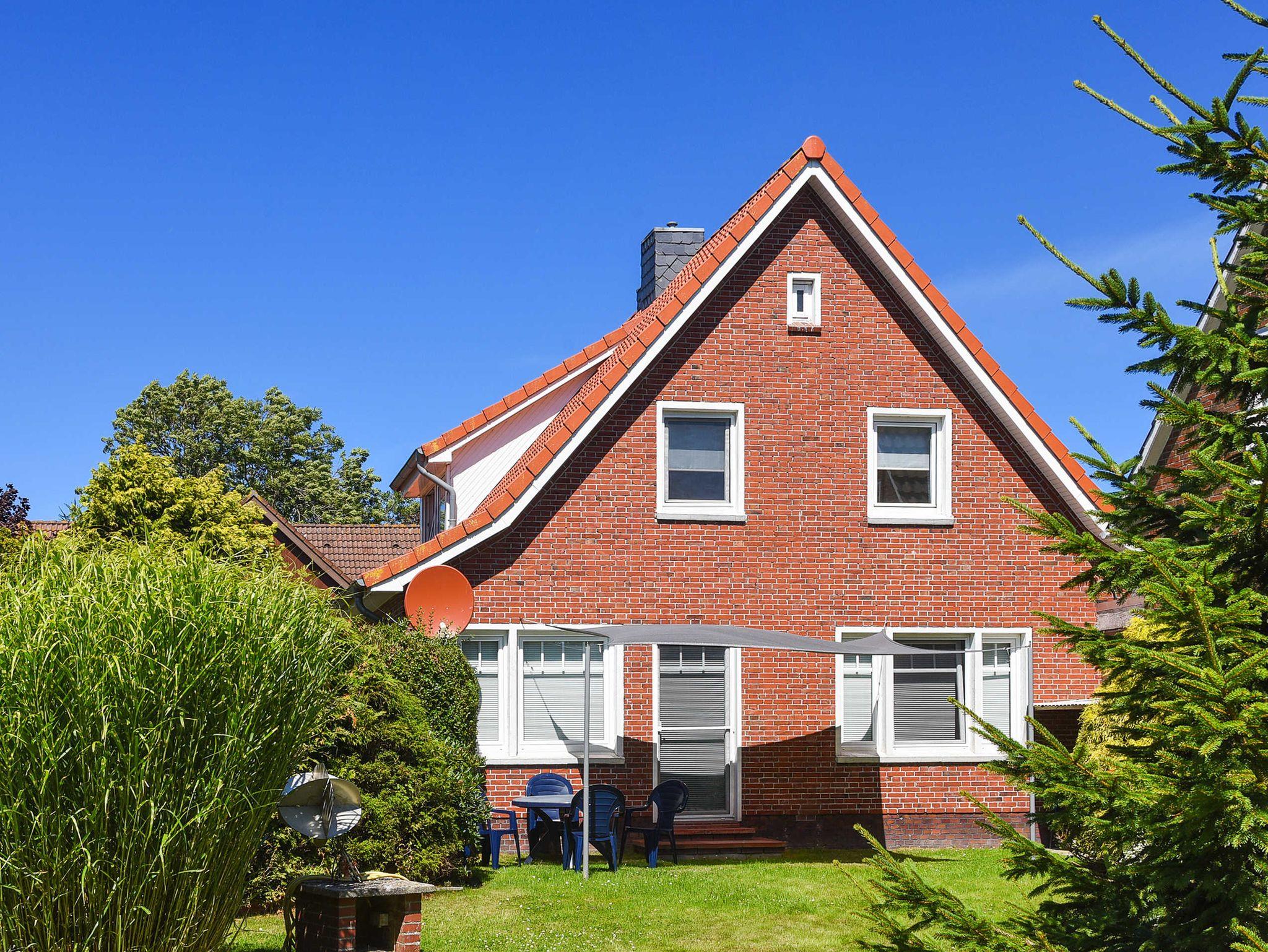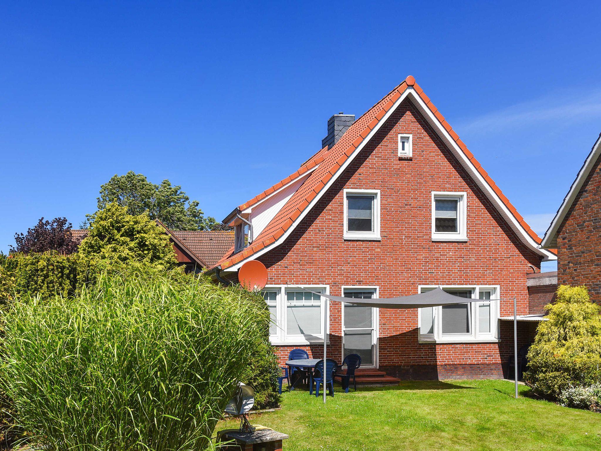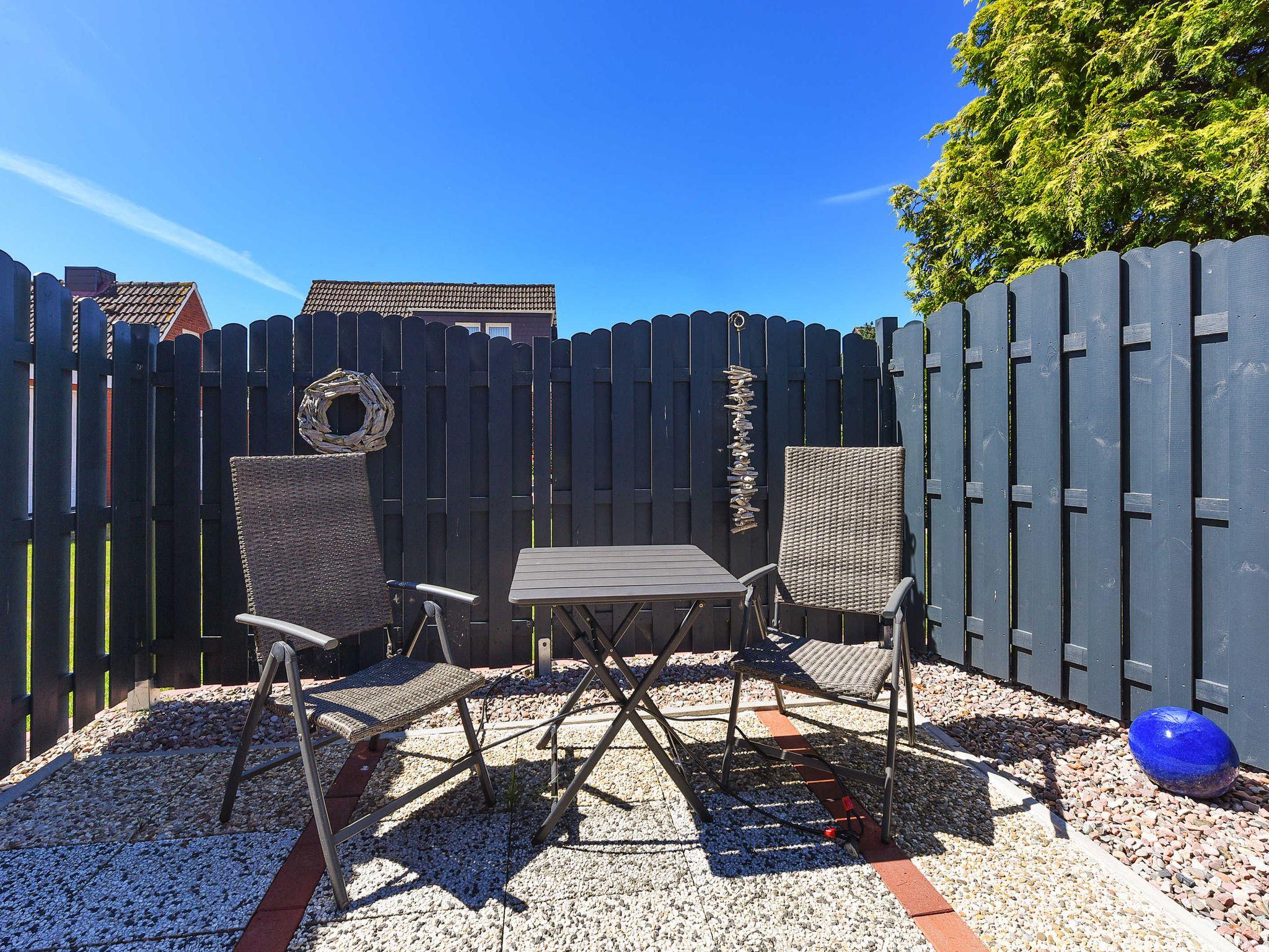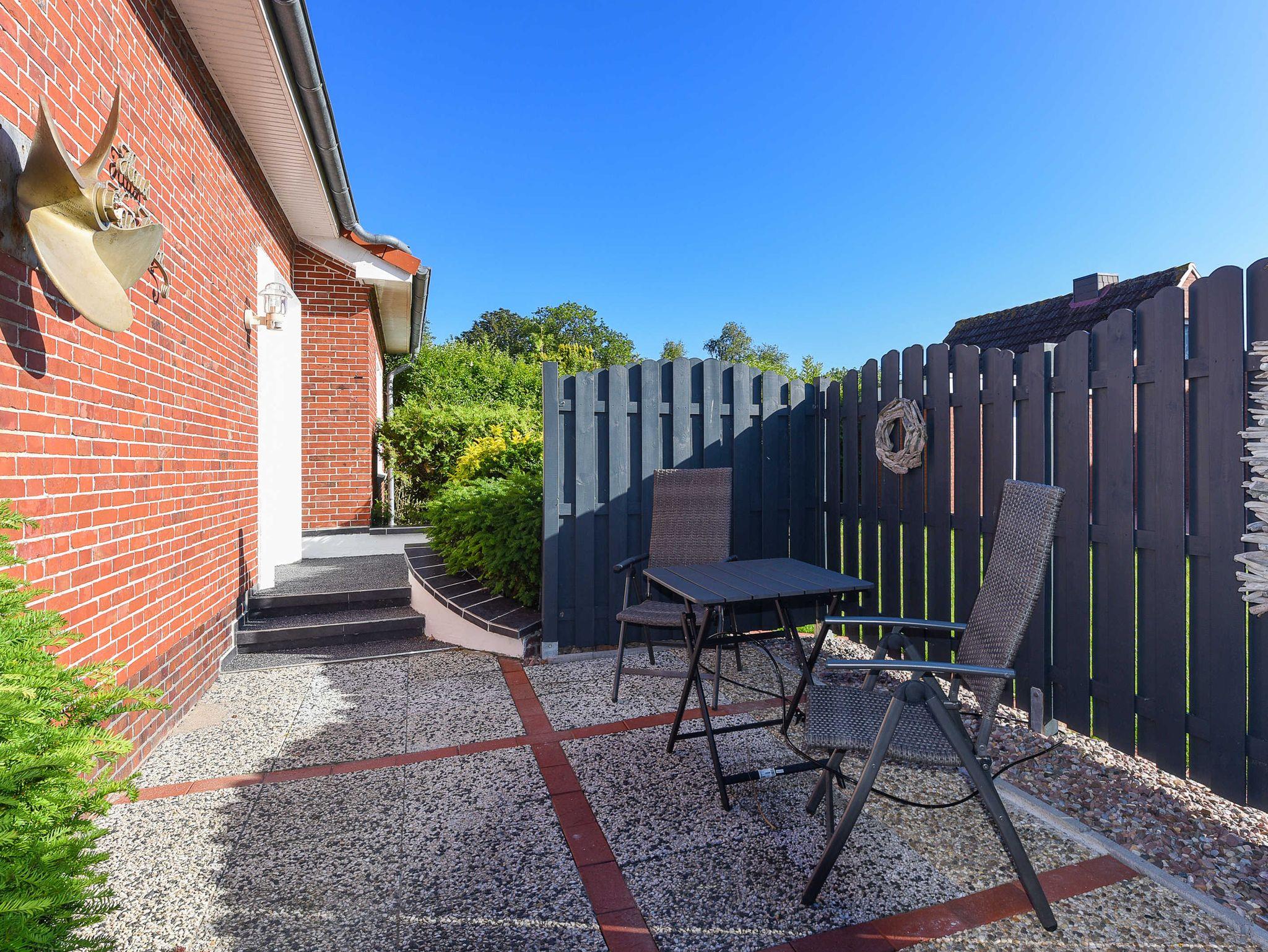 Hinter dem „Haus Kap Horn“ gibt es einen großen Garten mit viel Platz zum Abschalten und Erholen und vor dem Haus ist eine weitere schöne Sitzecke für die Ferienwohnung im Obergeschoss.