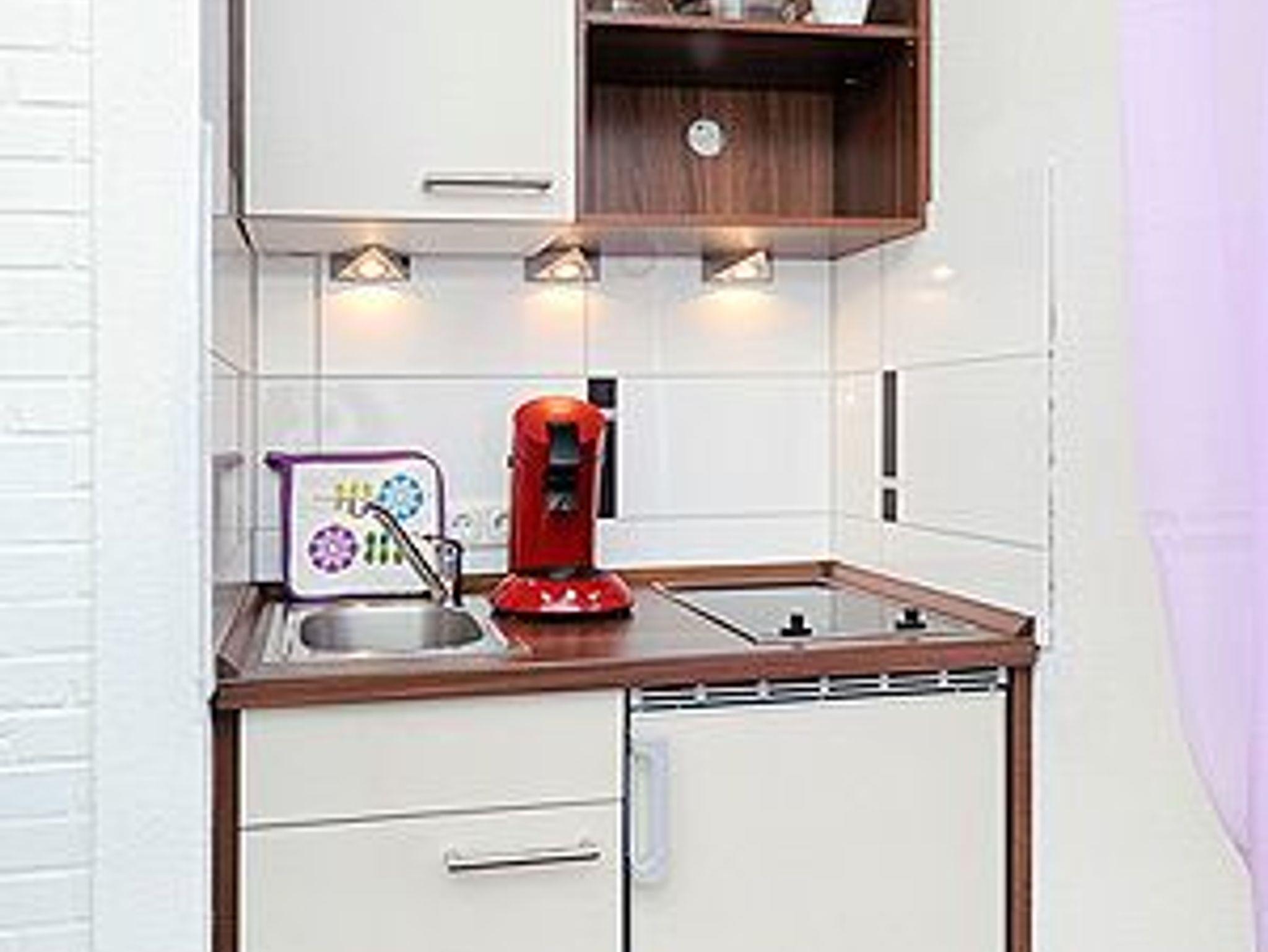 Größe ca. 28 Quadratmeter, Wohn- und Schlafraum mit integriertem Küchenbereich, Badezimmer mit Dusche, Waschtisch und WC, Erdgeschoss, Internetzugang über WLAN möglich, optimal für 2 Personen.