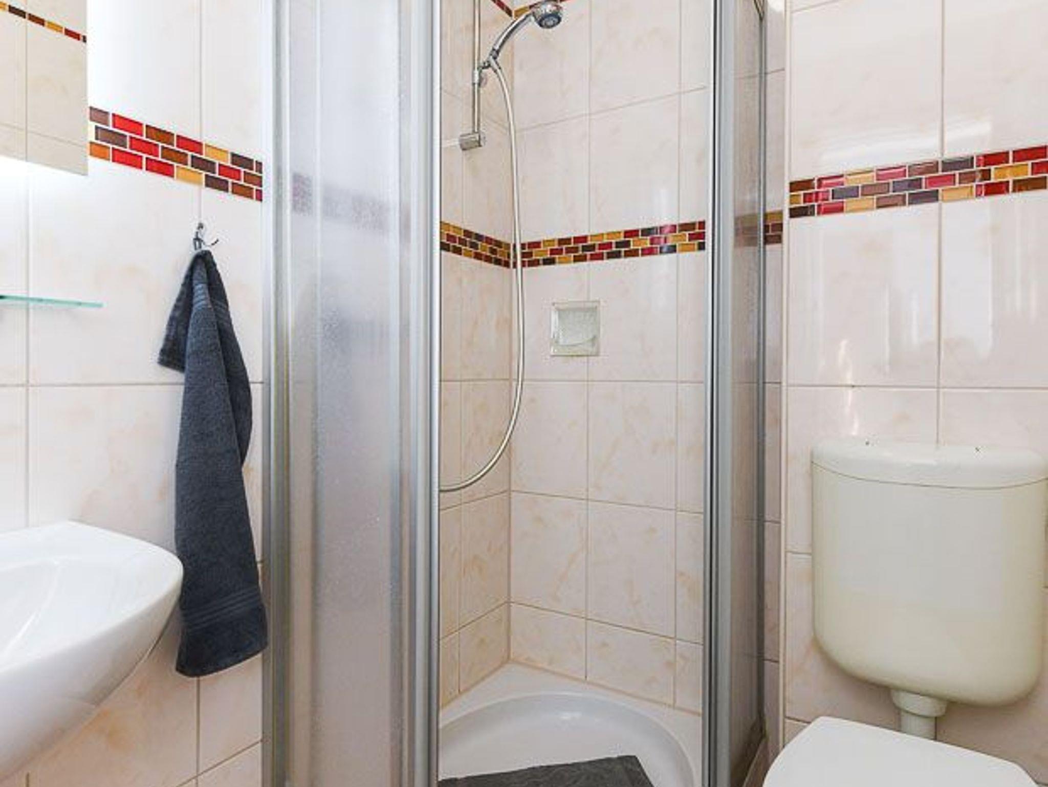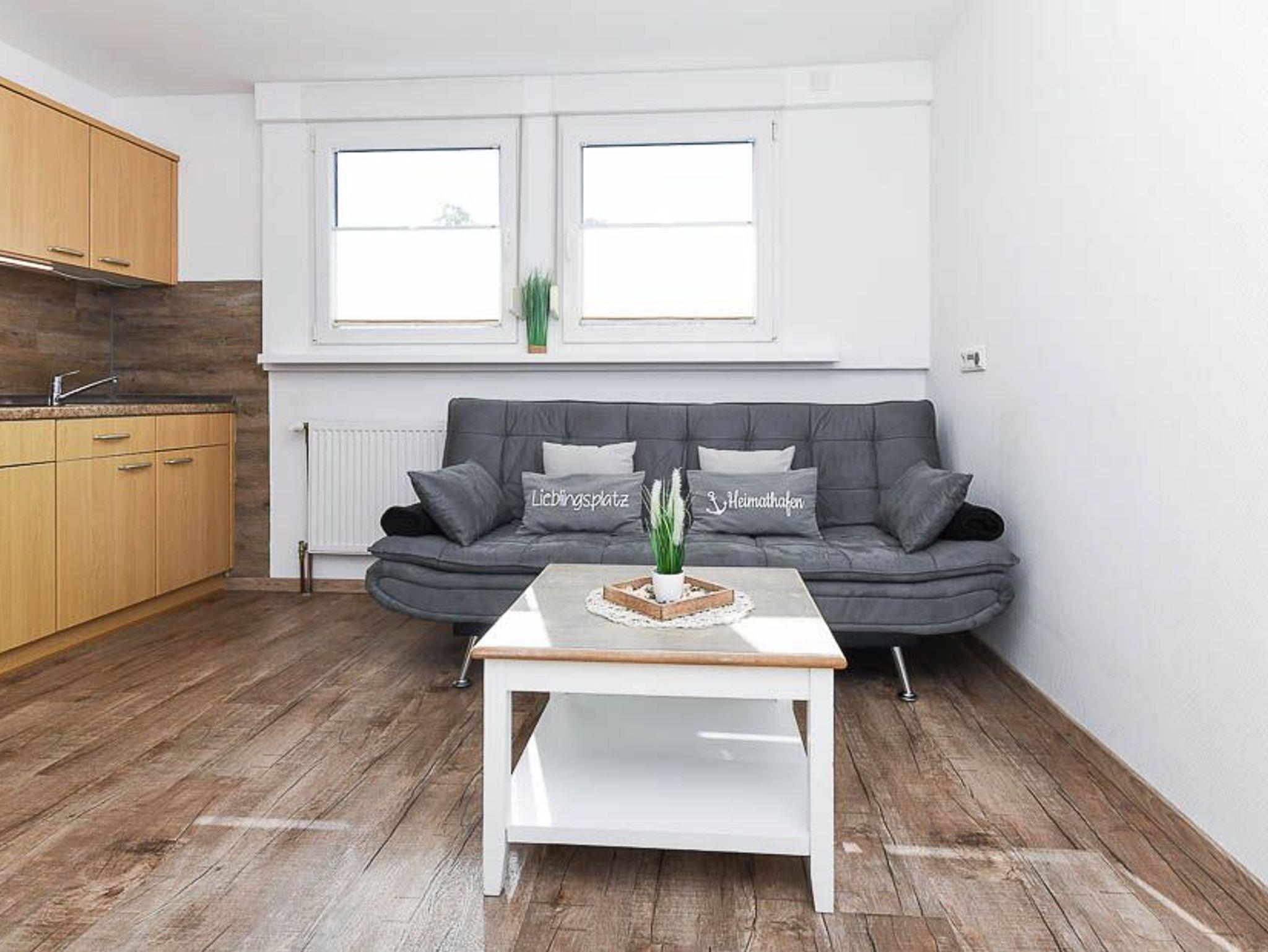 Größe ca. 35 Quadratmeter, Wohnraum mit integrierter Küche, Schlafzimmer, Badezimmer mit Dusche, Waschtisch und WC, Obergeschoss, optimal für 1 bis 3 Personen.