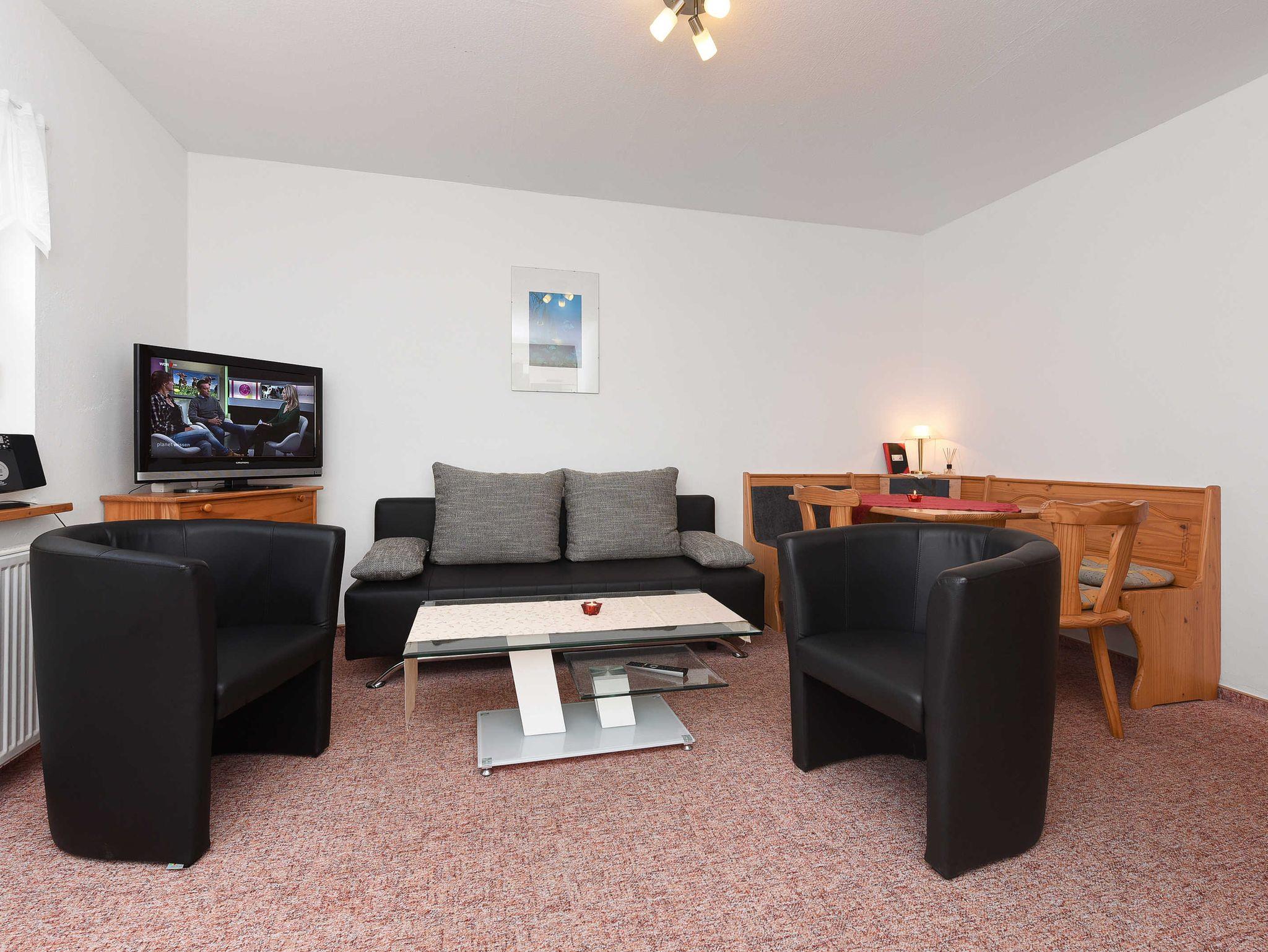 Unsere Gäste wohnen in gemütlichen und gut ausgestatteten Ferienwohnungen für ein bis drei Personen oder ein bis zwei Personen nebst zusätzlichem Kleinkind. Schöne große Außen-Terrassen und ein großer und gemütlicher Gemeinschaftsraum mit großem Fernseher runden das Angebot ab.