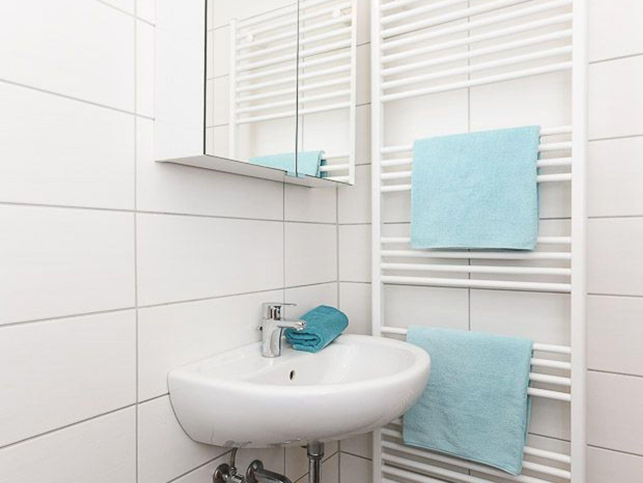 Badezimmer mit Dusche, Waschtisch und WC