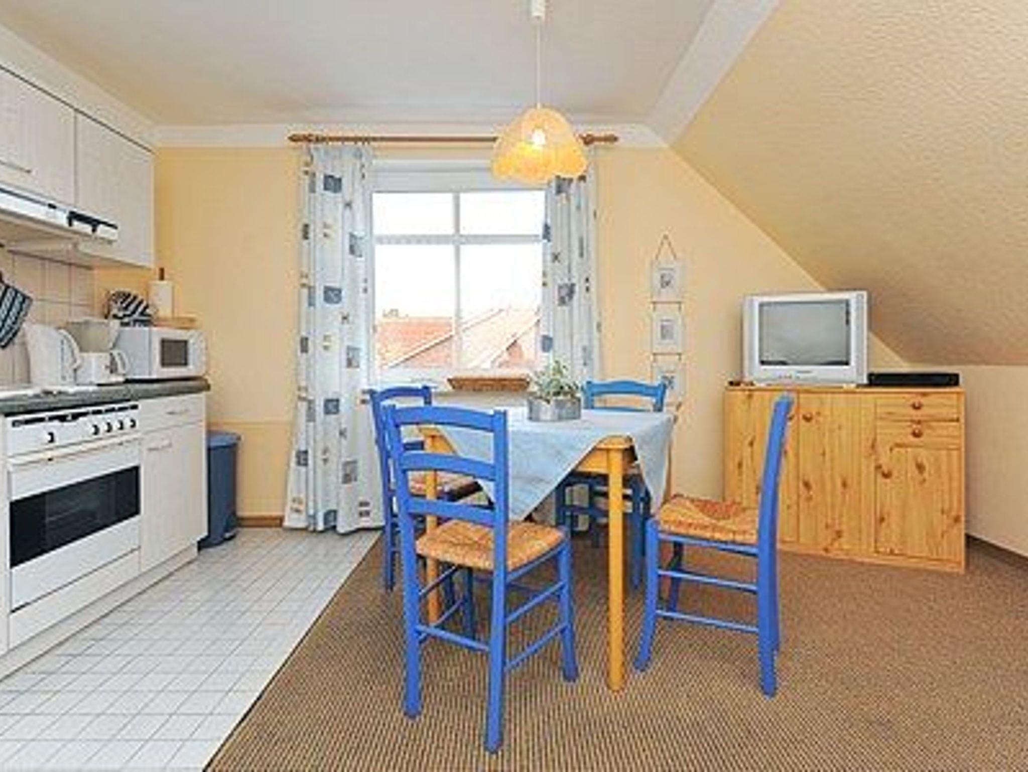 Größe ca. 55 Quadratmeter, Wohnraum mit integrierter Küche, Schlafzimmer, Ruheraum mit Schlafsofa, Badezimmer mit Dusche, Waschtisch und WC, Obergeschoss, optimal für 1 bis 2 Personen.