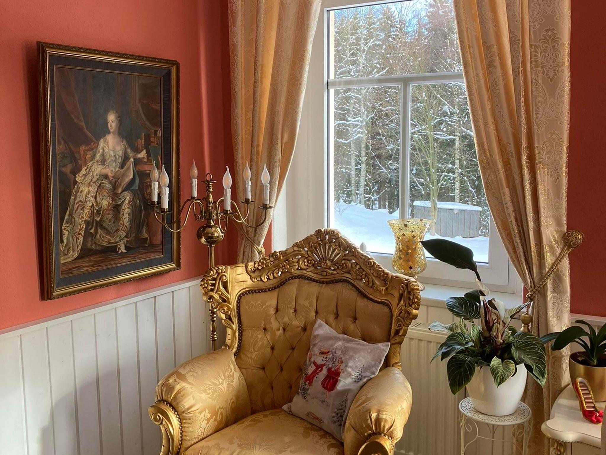 Highlights: Klavier, italienische Barockmöbel, Elektrokamin, traumhafter Blick aus Erkerfenstern