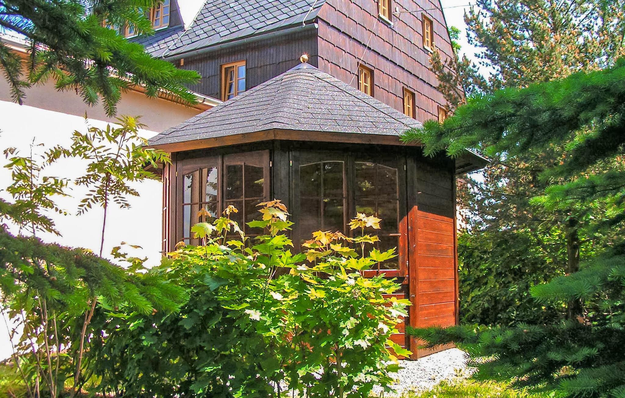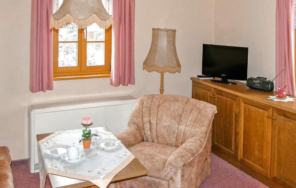 Kun cirka 200 m fra den inddæmmede Rauschenbach ligger feriehuset med 4 separate ferielejligheder og et ferieværelse på den cirka 1.800 kvm store grund, bygget i 1841 og renoveret i 1997 efter anførte aspekter. Boligerne er fordelt på tre etager og har plads til i alt op til 21 gæster I stueetagen er der en rustik lounge (cd-afspiller til rådighed) til omkring 25 personer med separat køkken med tallerkener, køleskab, mikroovn, ovn og opvaskemaskine, som er ideel til grupper og familiefester. Alle boligenheder er centralvarme og er udstyret med bad/toilet eller badekar samt tekøkken. På ejendommen er der fælles græsplæne, pavillon med grillfaciliteter, sandkasse, klatretårn, bordtennis, rutschebane og gynge samt parkeringsplads og cykelrum. Samlet pris er inklusiv vand- og energiforbrug, sengelinned og håndklæder ( bruse- eller badehåndklæder medbring venligst selv) samt slutrengøring. En lille hund (maks. højde op til 40 cm) er tilladt. Den 44 kvm store lejlighed for op til 5 personer ligger i husets stueetage og er udstyret med en stue (dobbeltseng sofa - ekstra seng til 2 personer, lænestol, TV, radio, WiFi), to soveværelser (1 x dobbeltseng, 1 enkeltseng), entre med tekøkken (elkogeplader, køleskab, service) og badeværelse (bruser/toilet, hårtørrer). Neuwernsdorf - et roligt, idyllisk lille sted i Erzgebirge – ligger lige ved den tjekkiske grænse, direkte ved Rauschenbach-dæmningen og er en tur værd på alle tider af året. I en højde på 500 m til over 800 m over havets overflade byder regionen på de bedste betingelser for en bred vifte af sportsaktiviteter samt for en afslappende ferie væk fra larm og stress. Om sommeren inviterer meget afmærkede stier dig til at tage på lange cykel- og vandreture, økopoolen Inrechnerberg eller fritids- og eventyrpoolen i Neuhausen byder på svømmesjov, og lystfiskere vil også finde passende muligheder her. Om vinteren er området et populært vintersportsområde, 120 km præparerede langrendsløjper, adskillige skilifte, skiskoler og skiudlejningsstationer, kælkebakker (i Holzhau med en speciel lift) og en sjov park for snowboardere. . Indkøbsmuligheder (bl.a. i vores egen gårdbutik i OT Clausnitz - friske grøntsager, kød- og pølseprodukter fra eget slagteri samt regionale produkter) og restauranter kan findes i nabobyerne Neuhausen andrechnerberg-Bienenmühle. Det er også værd at besøge nøddeknækkeren, glasværket eller det tekniske museum "Old Chair Factory". (Neuhausen) eller bryggerimuseet og tømmerflådens hus inrechnerberg.
