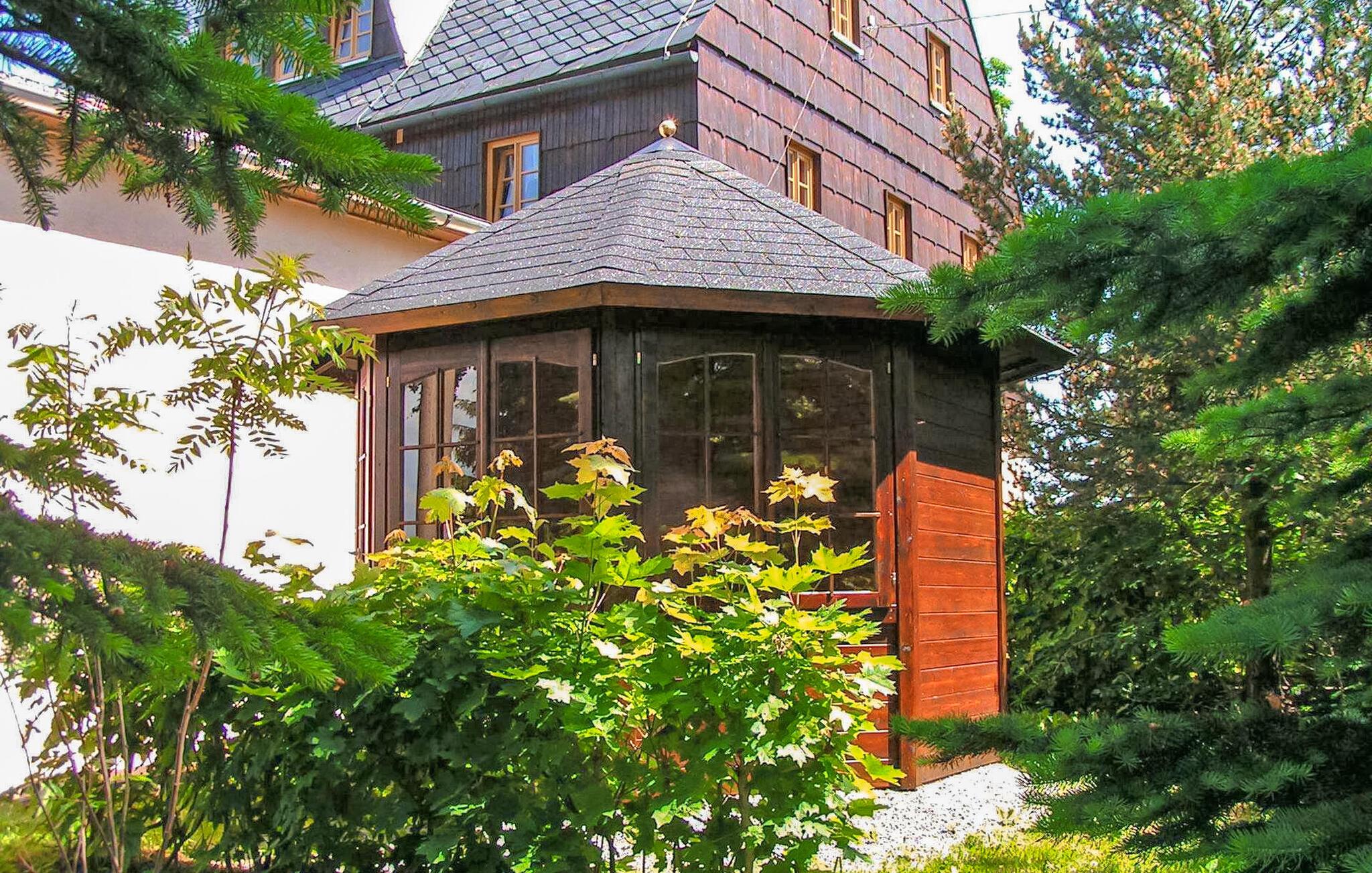 Kun cirka 200 m fra den inddæmmede Rauschenbach ligger feriehuset med 4 separate ferielejligheder og et ferieværelse på den cirka 1.800 kvm store grund, bygget i 1841 og renoveret i 1997 efter anførte aspekter. Boligerne er fordelt på tre etager og har plads til i alt op til 21 gæster I stueetagen er der en rustik lounge (cd-afspiller til rådighed) til omkring 25 personer med separat køkken med tallerkener, køleskab, mikroovn, ovn og opvaskemaskine, som er ideel til grupper og familiefester. Den 36 kvm store lejlighed med plads til op til 4 personer er beliggende på husets 1. sal, er centralt opvarmet og er udstyret med en stue (dobbeltseng - opredning til 2 personer, lænestol, TV, radio, WiFi) inkl. Tekøkken (elektriske kogeplader, køleskab, tallerkener), soveværelse (dobbeltseng) og badeværelse (bruser/toilet, hårtørrer). Til ejendommen hører en græsplæne til solbadning, en pavillon med grillfaciliteter, sandkasse, klatretårn, bordtennis, rutsjebane og gynge samt parkeringsplads og cykelkælder. Den samlede pris inkluderer vand- og energiforbrug, sengelinned og håndklæder (medbring gerne eget bad eller badehåndklæder) og slutrengøring. Neuwernsdorf - en stille, idyllisk lille by i Ertsbjergene ligger lige ved den tjekkiske grænse, direkte ved Rauschenbach-dæmningen og er et besøg værd på alle tider af året. I en højde på 500 m til over 800 m over havets overflade byder regionen på de bedste betingelser for en bred vifte af sportsaktiviteter samt for en afslappende ferie væk fra larm og stress. Om sommeren inviterer meget afmærkede stier dig til at tage på lange cykel- og vandreture, økopoolen Inrechnerberg eller fritids- og eventyrpoolen i Neuhausen byder på svømmesjov, og lystfiskere vil også finde passende muligheder her. Om vinteren er området et populært vintersportsområde, 120 km præparerede langrendsløjper, adskillige skilifte, skiskoler og skiudlejningsstationer, kælkebakker (i Holzhau med en speciel lift) og en sjov park for snowboardere. . Indkøbsmuligheder (bl.a. i vores egen gårdbutik i OT Clausnitz - friske grøntsager, kød- og pølseprodukter fra eget slagteri samt regionale produkter) og restauranter kan findes i nabobyerne Neuhausen andrechnerberg-Bienenmühle. Det er også værd at besøge nøddeknækkeren, glasværket eller teknisk museum Alte Stuhlfabrik (Neuhausen) eller bryggerimuseet og flådemandshuset inrechnerberg.