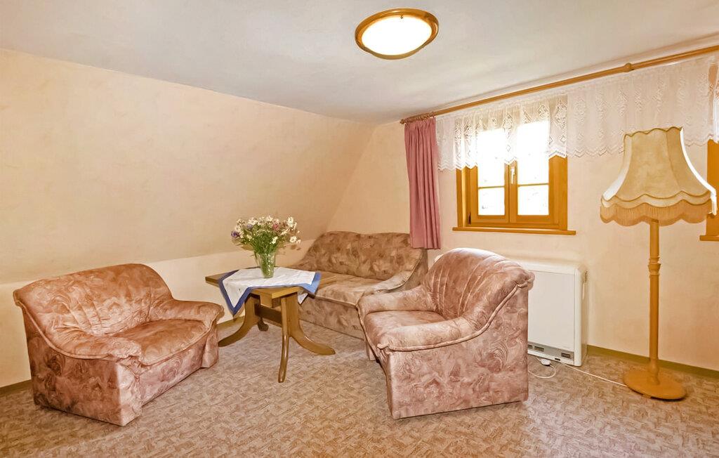 Kun cirka 200 m fra den inddæmmede Rauschenbach ligger feriehuset med 4 separate ferielejligheder og et ferieværelse på den cirka 1.800 kvm store grund, bygget i 1841 og renoveret i 1997 efter anførte aspekter. Boligerne er fordelt på tre etager og har plads til i alt op til 21 gæster I stueetagen er der en rustik lounge (cd-afspiller til rådighed) til omkring 25 personer med separat køkken med tallerkener, køleskab, mikroovn, ovn og opvaskemaskine, som er ideel til grupper og familiefester. Det 24 kvm store ferieværelse til 2 personer ligger på husets loft, er centralt opvarmet og er udstyret med stue/soveværelse inklusiv tekøkken og badeværelse. Værelset kan også bookes i forbindelse med ferielejlighed 4 (DZV515). På ejendommen er der pavillon med grillfaciliteter, medbring venligst badehåndklæder.