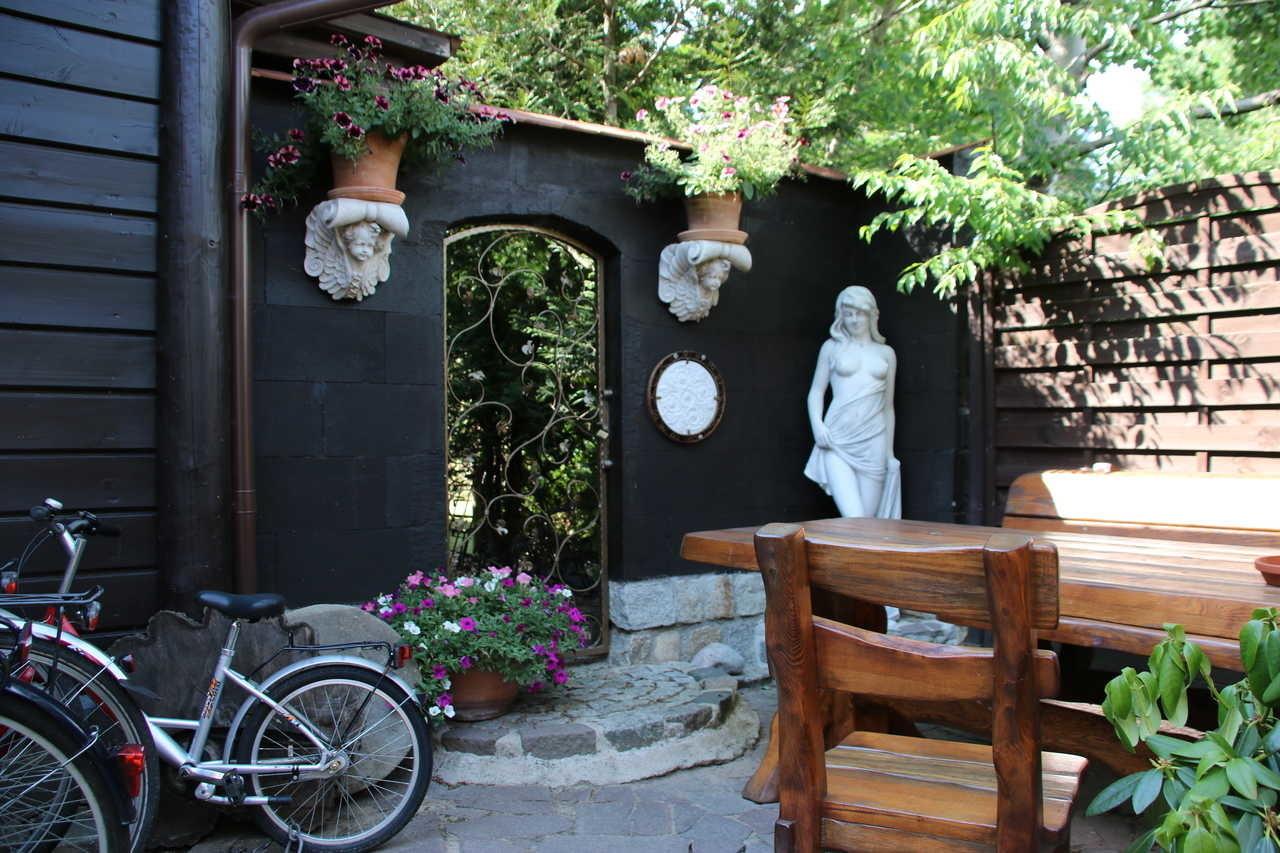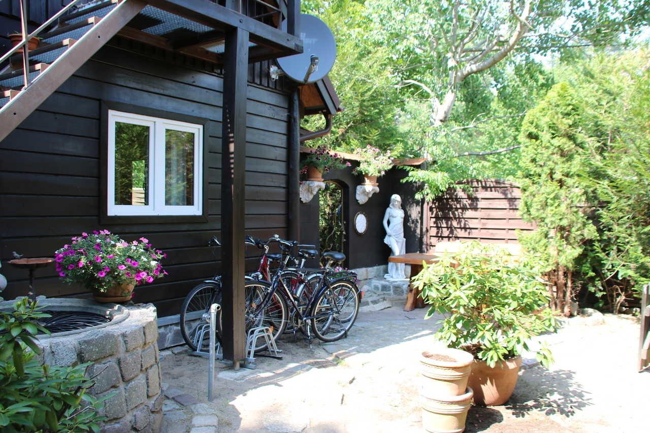Vor dem Hauseingang und auf dem Grundstück befindet sich die Terrasse. Auf dem Grundstück finden Sie gemütliche Sitzecken zum Verweilen und Grillen.