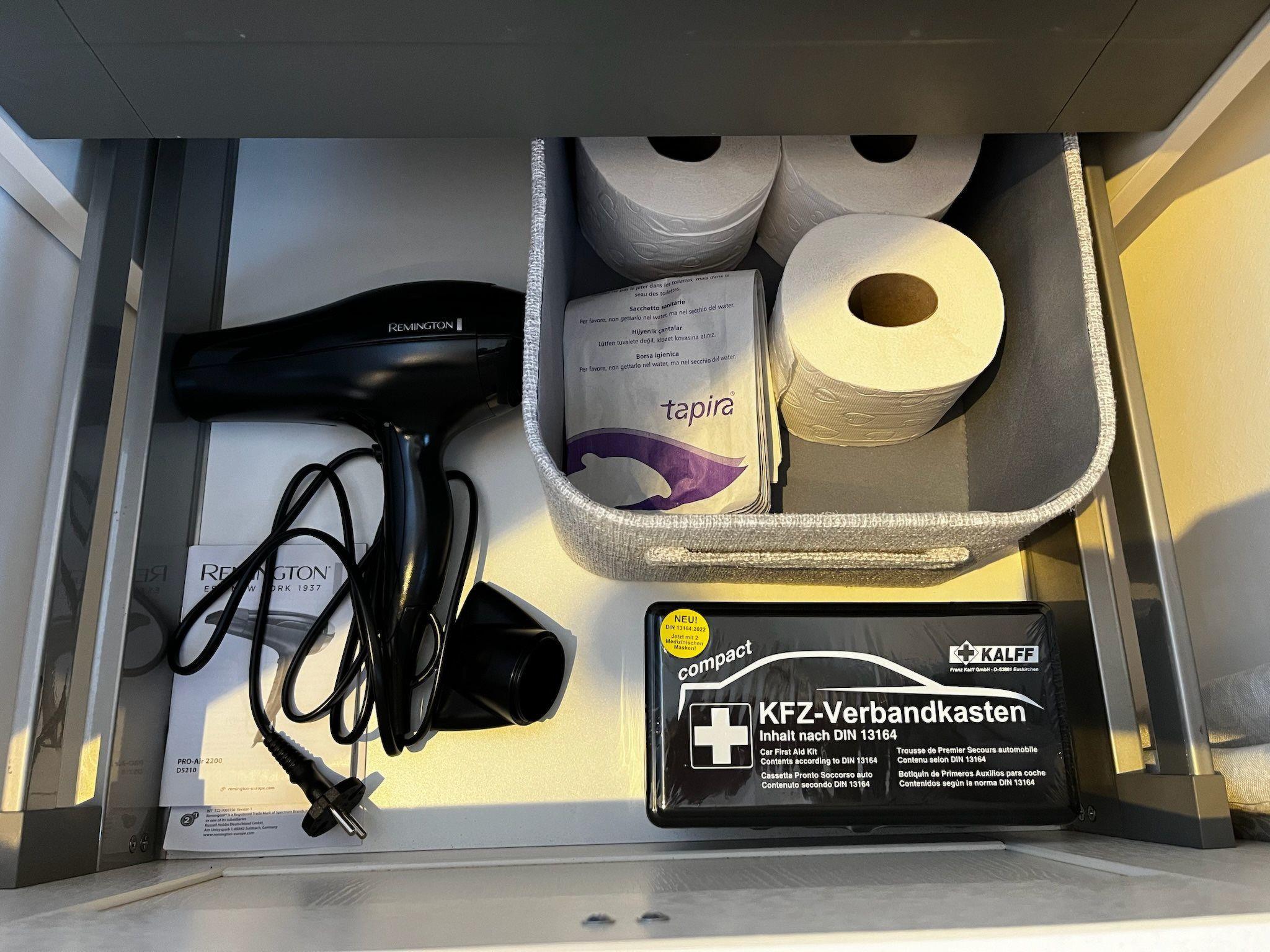 In the fully equipped kitchenette you will find everything you need to prepare your meals, including a dishwasher, microwave, kettle and coffee machine. The cosy bedroom with a comfortable double bed guarantees restful nights, while the modern bathroom with shower, washbasin, toilet and hairdryer leaves nothing to be desired.