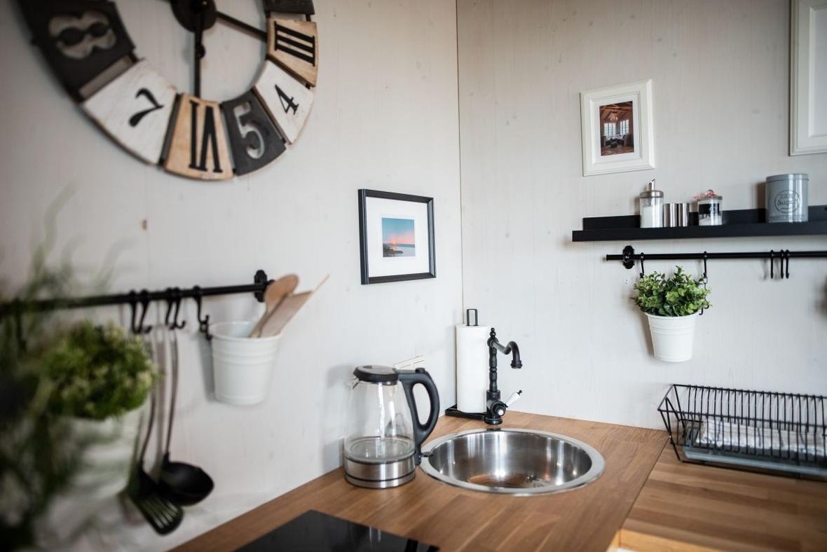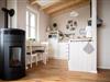 Der gemütliche Wohnraum ist mit viel Liebe zum Detail modern eingerichtet. Ein Pellet-Kamin sorgt nicht nur in der kalten Jahreszeit für romantische Abende. Die breiten und weichen Windowseats laden zum Entspannen ein – Lesen oder den Blick aus dem Fenster schweifen lassen und dem Farbenspiel der Natur von Sonnenaufgang bis Sonnenuntergang zusehen.