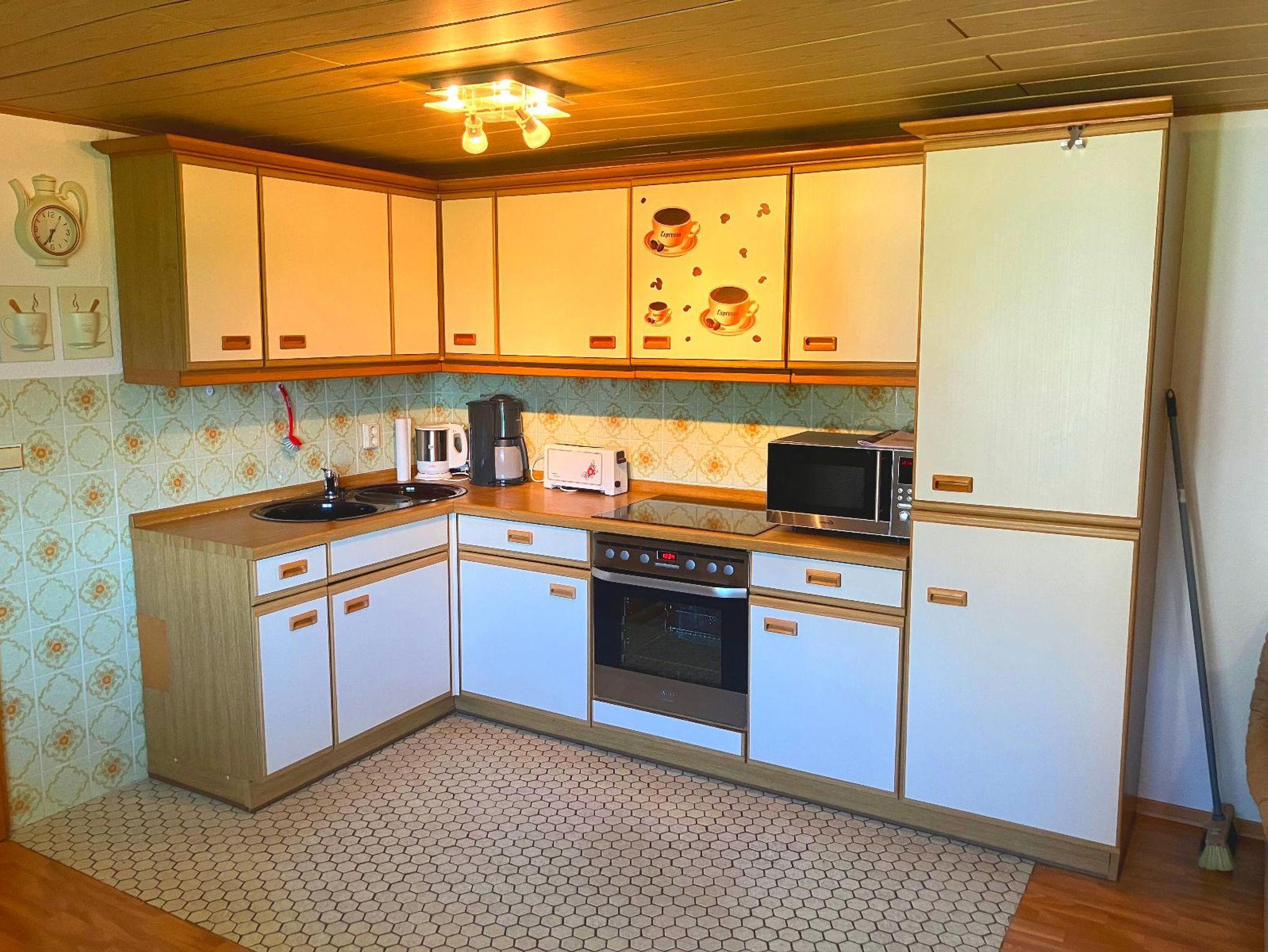 Die komplett ausgestattete Küche mit Kühlschrank inkl. Gefrierfach, Herd, Backofen, Microwelle, Eierkocher, Wasserkocher, Toaster und Kaffeefiltermaschine lässt keine Wünsche offen.