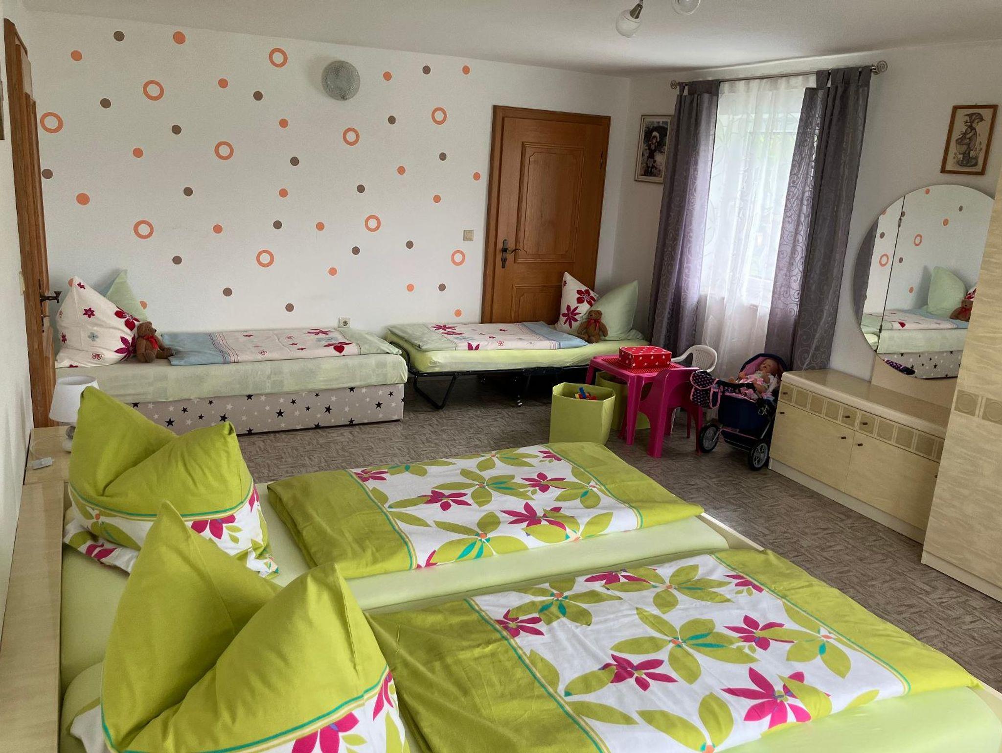 Ein Zusatzbett kann bei Bedarf aufgestellt werden, ebenso ein Kinderbett (Babybett).