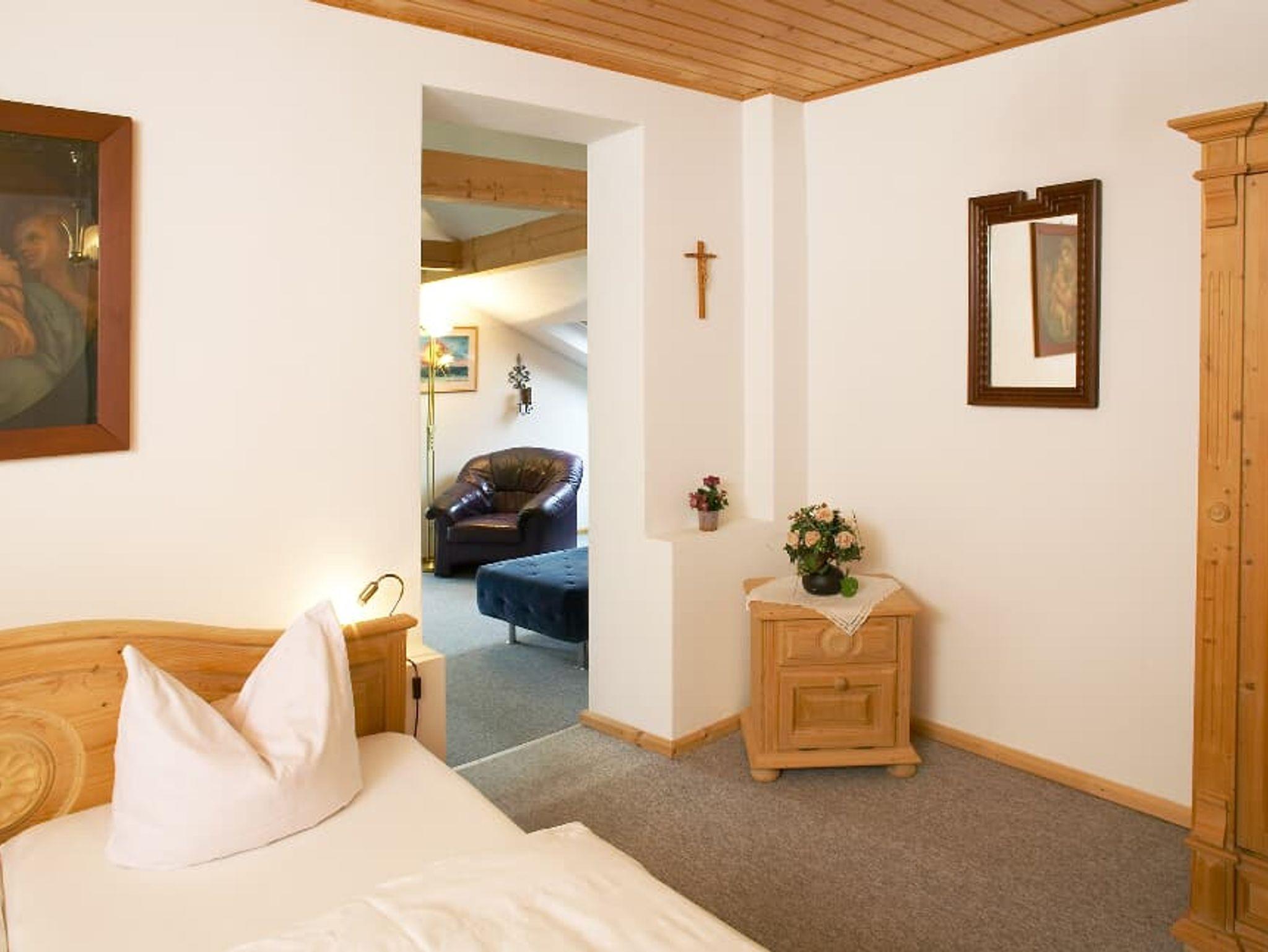 Panorama Suite 4 mit Balkon Elegant eingerichtete Suite mit Doppelbett im extra Raum, großer Couchbereich mit Sat-TV und separater Dusche mit WC. Balkon mit einem sehr schönen Ausblick auf den Garten und die anliegenden Wiesen. Auf Wunsch können 1- 2 Zustellbetten für Kinder bereitgestellt werden. Möglich ist Übernachtung nur mit Frühstück oder zusätzlich ein 3-Gänge-Menü zum Abendessen. Kinderermäßigung bis 14 Jahren Das Frühstück wird Ihnen an Ihrem reservierten Tisch im Gastzimmer vorbereitet. Zusätzlich können Sie Frühstücks-Spezialitäten a la Carte auswählen. Grundlegende Ausstattung der Panorama Suite: Doppelbett, Hand- und Badetücher, Sat-TV, kostenloses WLAN, Radio, Föhn, großer Schrank. Gerne können Sie auch die überdachte Hochterrasse auf der gleichen Etage als Raucherbereich nützen. Zusätzlich stehen Etagentoiletten zur Verfügung. Mindestaufenthalt für diesen Preis: 3 Nächte Belegung: 2 Person + 2 Kinder