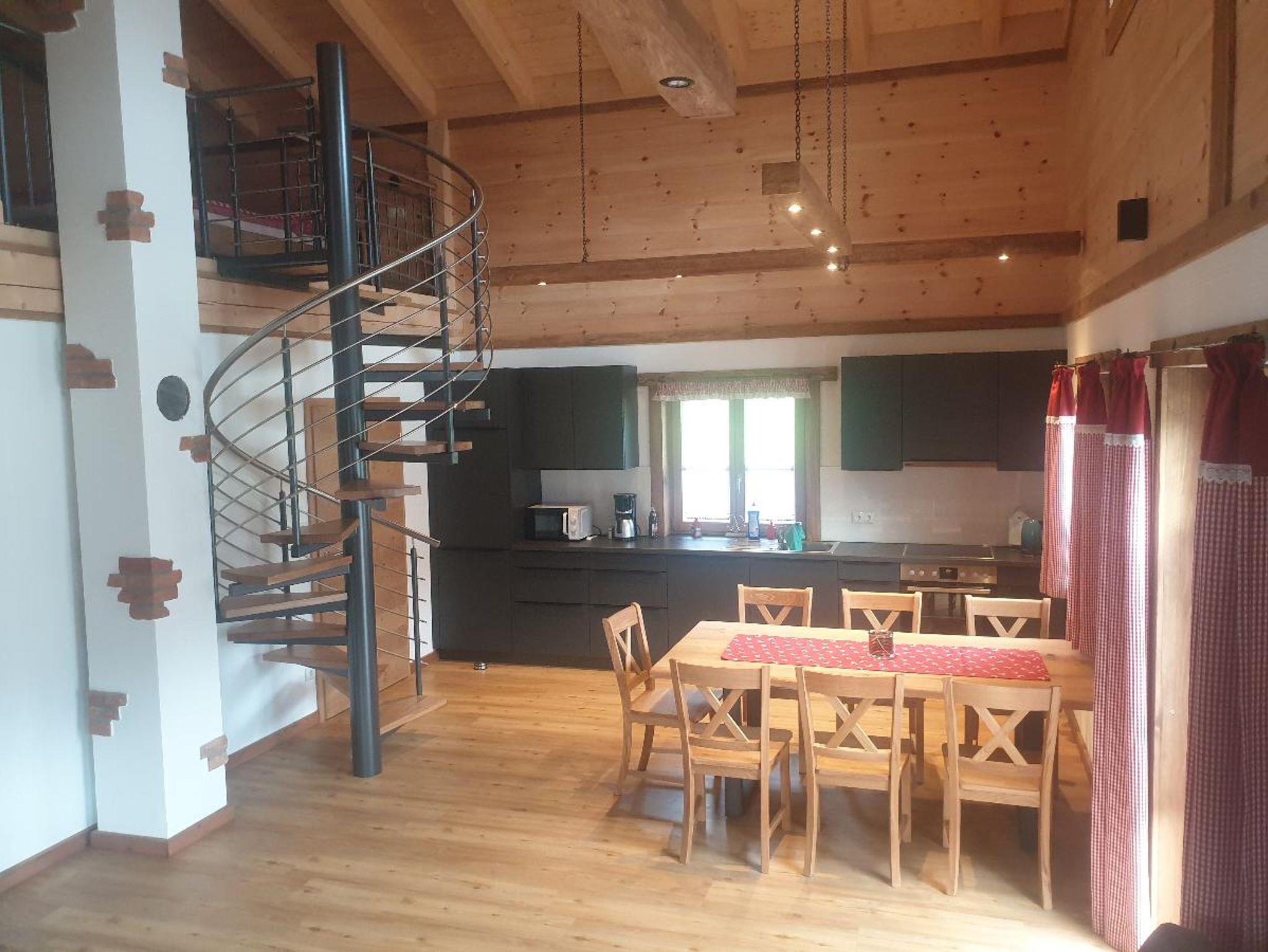 Wir die Familie Drexler freuen uns, Ihnen unser jetzt im Oktober 2021 fertiggestelltes Ferienhaus für 2 bis 7 Personen anbieten zu können. Das liebevoll eingerichtete Haus in Holzbauweise mit einer Gesamtwohnfläche von 120 qm bietet im Erdgeschoss (80 qm) einen Wohnraum mit Küche, Esstisch, Couch, TV, ein Badezimmer mit ebenerdiger großer Dusche, Waschtisch und WC, sowie ein Schlafzimmer mit Doppelbett, ein Schlafzimmer mit Einzelbett. Außerdem eine Gästetoilette und einen Flur. Die Galerie im 1. Stock bietet auf 40 qm einen Wohnraum mit 2 Doppelbetten, Couchgarnitur, TV und ein Badezimmer mit Badewanne, Waschbecken und WC. Die voll eingerichtete Küche verfügt über Kaffeemaschine, Toaster, Wasserkocher, Microwelle, Herd, Backofen, Eierkocher, Spülmaschine, Kühlschrank und Gefrierfach. Bettwäsche und Handtücher sind inklusive. Sie erwartet: Barrierefreie Anfahrt, Eingang/ 1. Sock Behindertengerecht, Allergiker freundliche Unterkunft, Spielscheune mit Tischtennis, Dart, Kicker usw., Kneipptrettbecken am naheliegendem Bachlauf (50m), Seelenschaukel am naheliegendem Wäldchen, Grillmöglichkeiten, eine große Terrasse, Liegewiese, Streichelzoo (Hasen, Meerschweinchen, Katzen). Es gibt Wanderwege und Radwege nahe der Tschechischen Grenze. Skifahren am Hausberg Hoher Bogen ist möglich, es gibt Langlaufloipen und auch ein Naturbad in der Nähe.