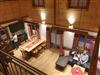 Die Galerie im 1. Stock bietet auf 40 qm einen Wohnraum mit 2 Doppelbetten, Couchgarnitur, TV und ein Badezimmer mit Badewanne, Waschbecken und WC.
