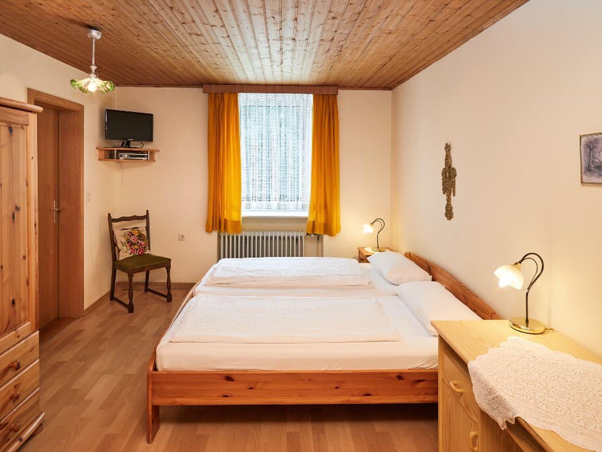 Zimmer 6 Kleines Doppelzimmer mit Dusche/WC in einem extra Raum, Sat-TV und kostenloses WLAN. Übernachtung mit Frühstück im gemütlichen Gastzimmer beim Eingangsbereich des Hauses. Das Frühstück wird Ihnen an Ihrem reservierten Tisch vorbereitet. Zusätzlich können Sie Frühstücks-Spezialitäten a la Carte auswählen. Kinderermäßigung bis 14 Jahren Ausstattung des Komfortzimmers 6: Doppelbett, Hand- und Badetücher, kleiner Tisch mit 2 Stühlen, Radio und Kleiderschrank. Außerdem steht Ihnen die großzügige Couch im Vorraum zur Verfügung oder die Hochterrasse auf der Etage, um Ihre Zigarette in Ruhe zu genießen. Auch sind zwei Etagentoiletten vorhanden.. Mindestaufenthalt für diesen Preis: 3 Nächte Belegung: 2 Person