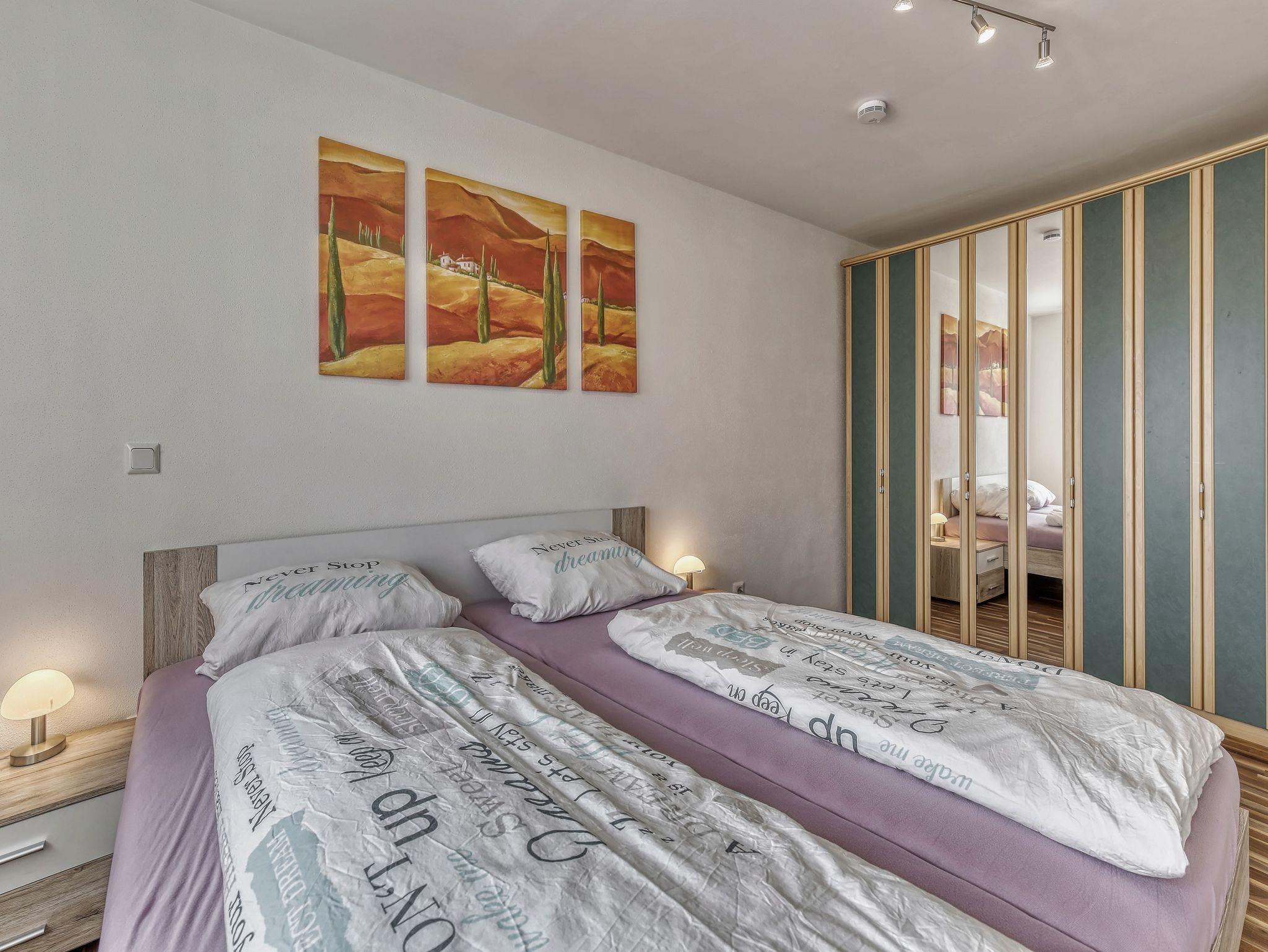 Liebe Gäste unseres Hauses. Es erwartet Sie eine schöne nagelneue Nichtraucher-Wohnung (1x Doppelbett 180x200cm, 1x Schlafsofa ausklappbar ca. 130x200cm für 2 Kinder bis 16 Jahre) mit einer modernen und hochwertigen Ausstattung. Auf Anfrage kann ein drittes Kind bis max. 2 Jahre im Babyzustellbett übernachten. Optional kann das Apartment auf Anfrage ohne Kinder mit 3 Erwachsene belegt werden. Im Schlafzimmer und Wohn- Schlafbereich ist ein Echtholznußbaumparkett verlegt. Fliesenbelag in Bad und Diele. Bad mit Fußbodenheizung. Die Wohnung hat zudem eine kontrollierte Wohnraumlüftung mit Wärmerückgewinnung und Pollenfilter für beste Frischluftqualität. Eine komplett ausgestattete Einbauküche inkl. Kaffee + Tee und ein Kasten Mineralwasser bei Ankunft machen den Aufenthalt besonders angenehm. Kinder zahlen 4,- Euro pro Nacht+Kind) Frische Bettwäsche und Handtücher sind vorhanden.